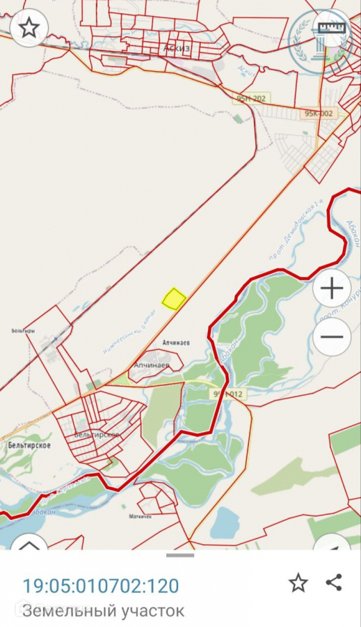 Участок расположен по адресу; Республика Хакасия, Аскизский район, Аскизский с/с, аал Апчинаев ,в 1,6 км на северо-восток от дома №25,ул. С. Лазо, кадастровый номер 19:05:010702:120