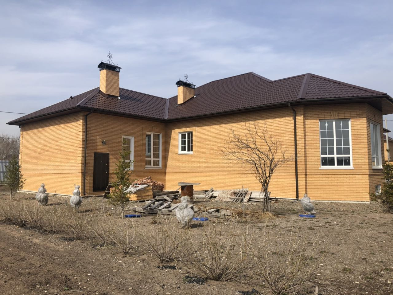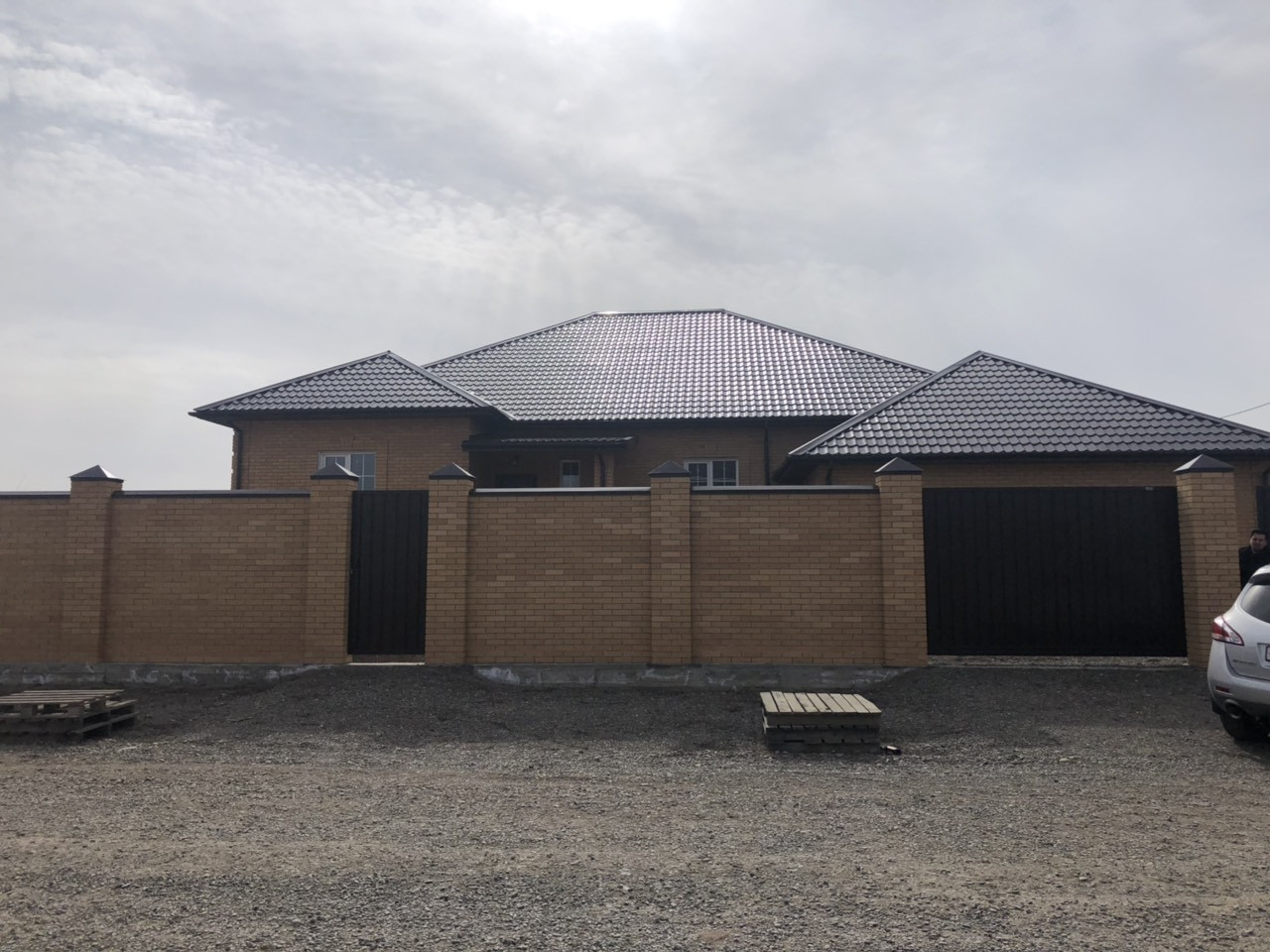 Чистый кирпич, общая площадь 380 кв.м, без внутренней отделки, 4 комнаты + кухня - гостиная. Цокольный этаж, гараж на два автомобиля, так же имеется баня с бассейном.