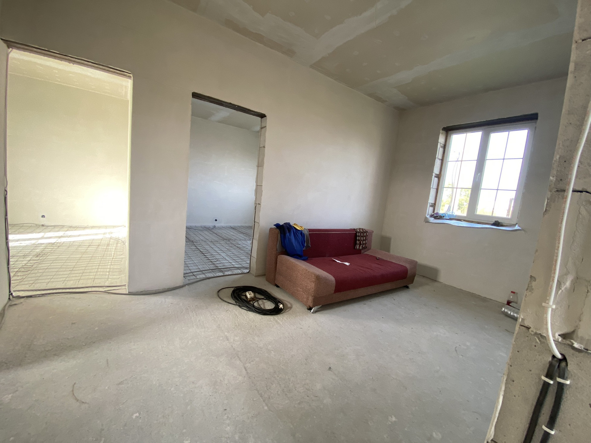 Внимание, эксклюзивная и очень срочная продажа‼️прекрасный недострой , стоит на широкой и жилой улице, а в конце улицы река☺️, дом с внешней отделкой, доделываем облицовку фундамента и ставим ворота, внутренняя штукатурка под чистовую отделку, полы готовы под теплую систему, дорогие окна со штрусами, отдельно выход в сад через французскую дверь!