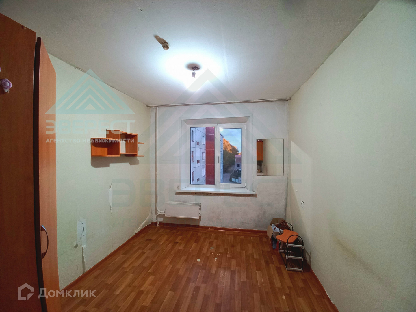 В комнате окно ПВХ. На полу линолеум. Хорошая новая дверь в комнату.