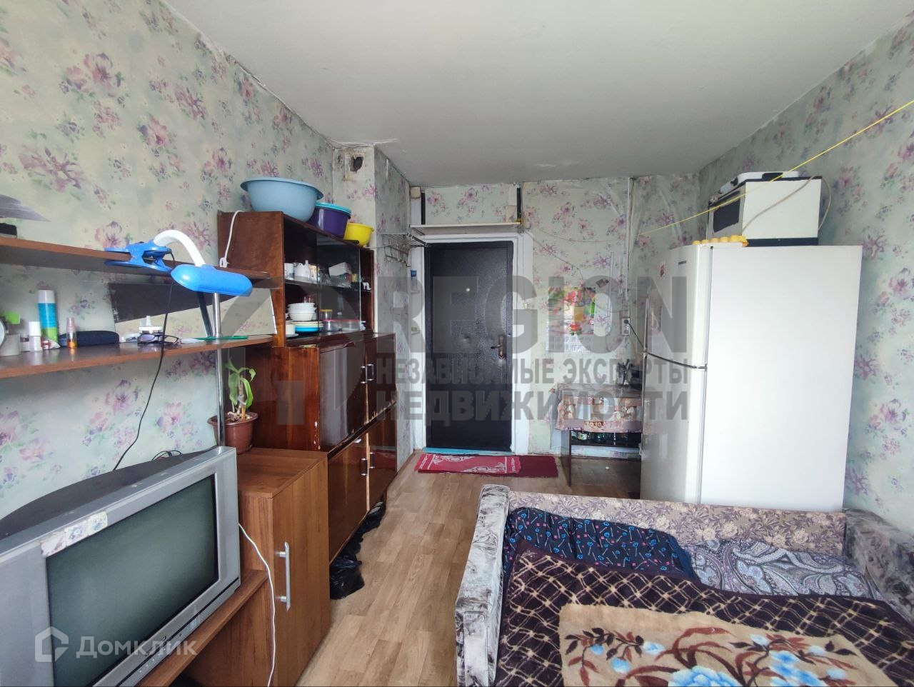Комната общей площадью 12 кв.м. окно в комнате ПВХ, на стенах оклеены обои, напольное покрытие линолеум, входная дверь металлическая. Соседи тихие, семейные.