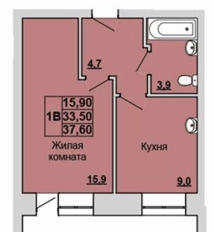 Общая площадь 37.6 м2