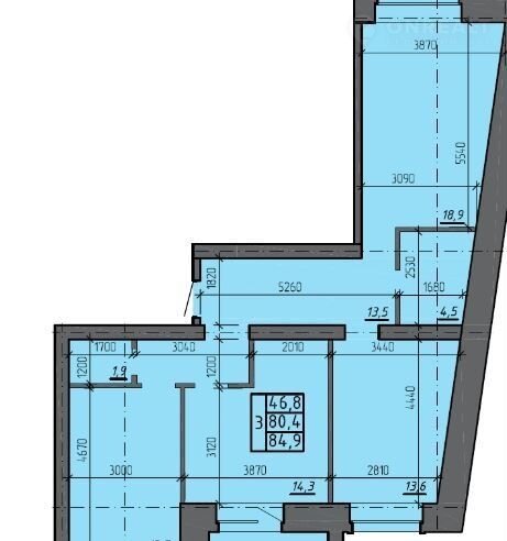 Общая площадь 80.9 м2
