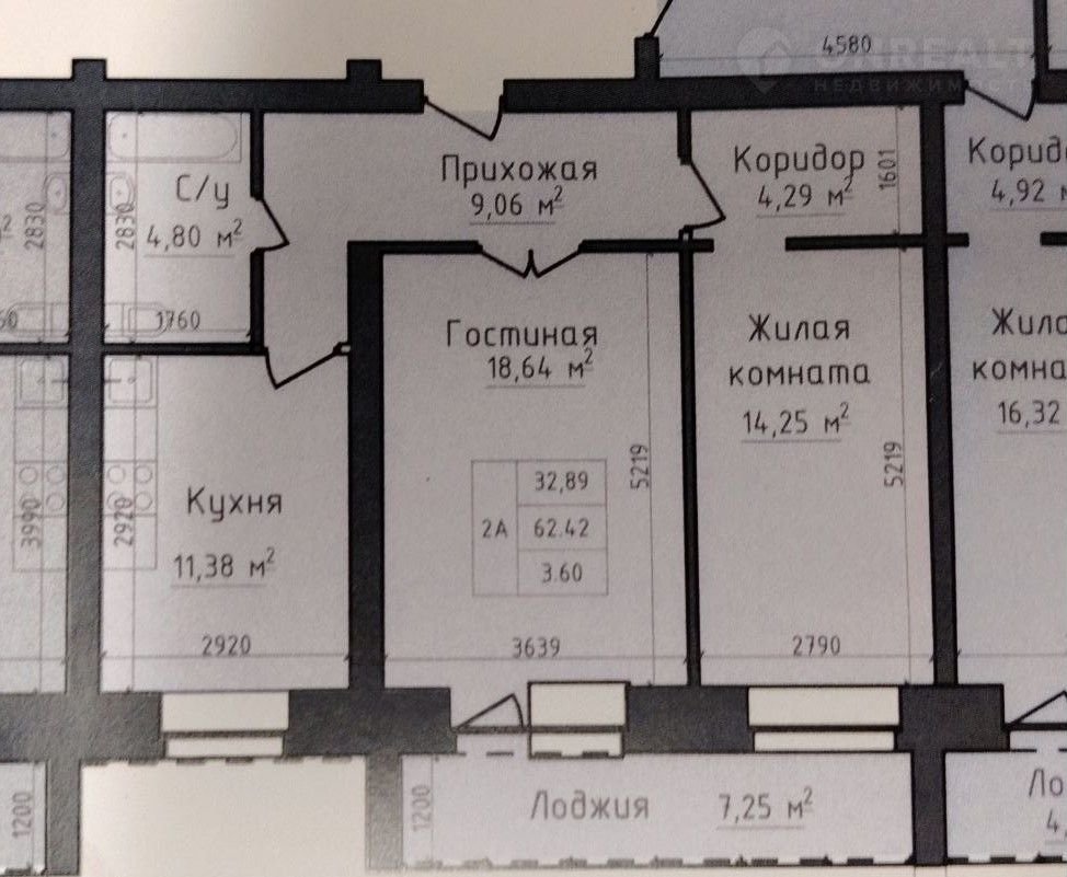 Общая площадь 62.4 м2