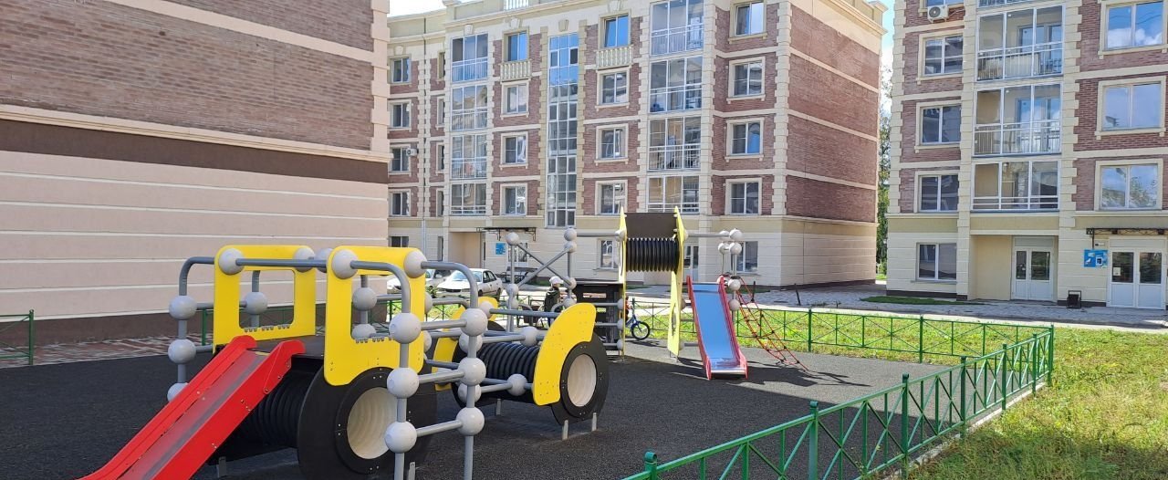 Дом с современной детской и спортивной площадками. Парковкой вокруг дома . В шаговой доступности действующий детский сад, школа, магазины, остановка общественного транспорта.
