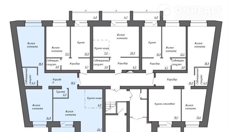 Площадь кухни 25.1 м2