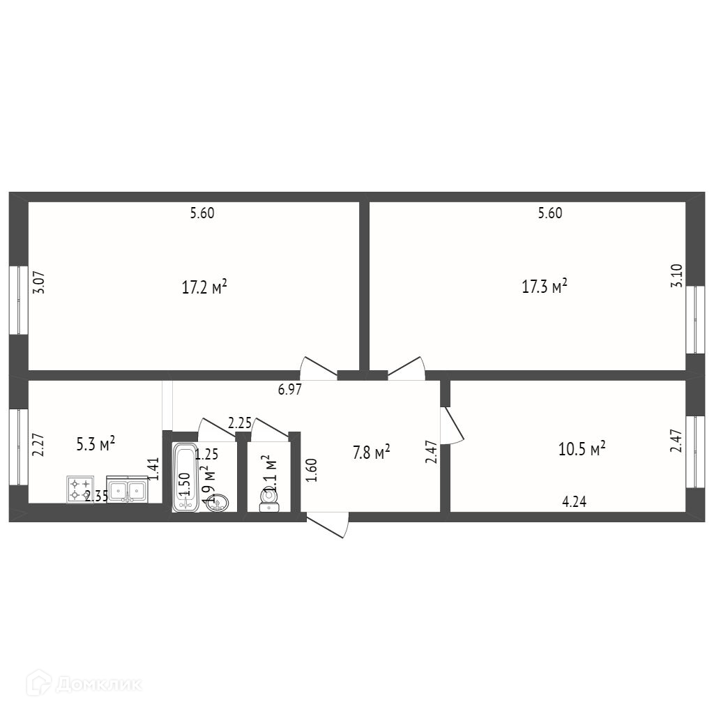 Общая площадь 62 м2