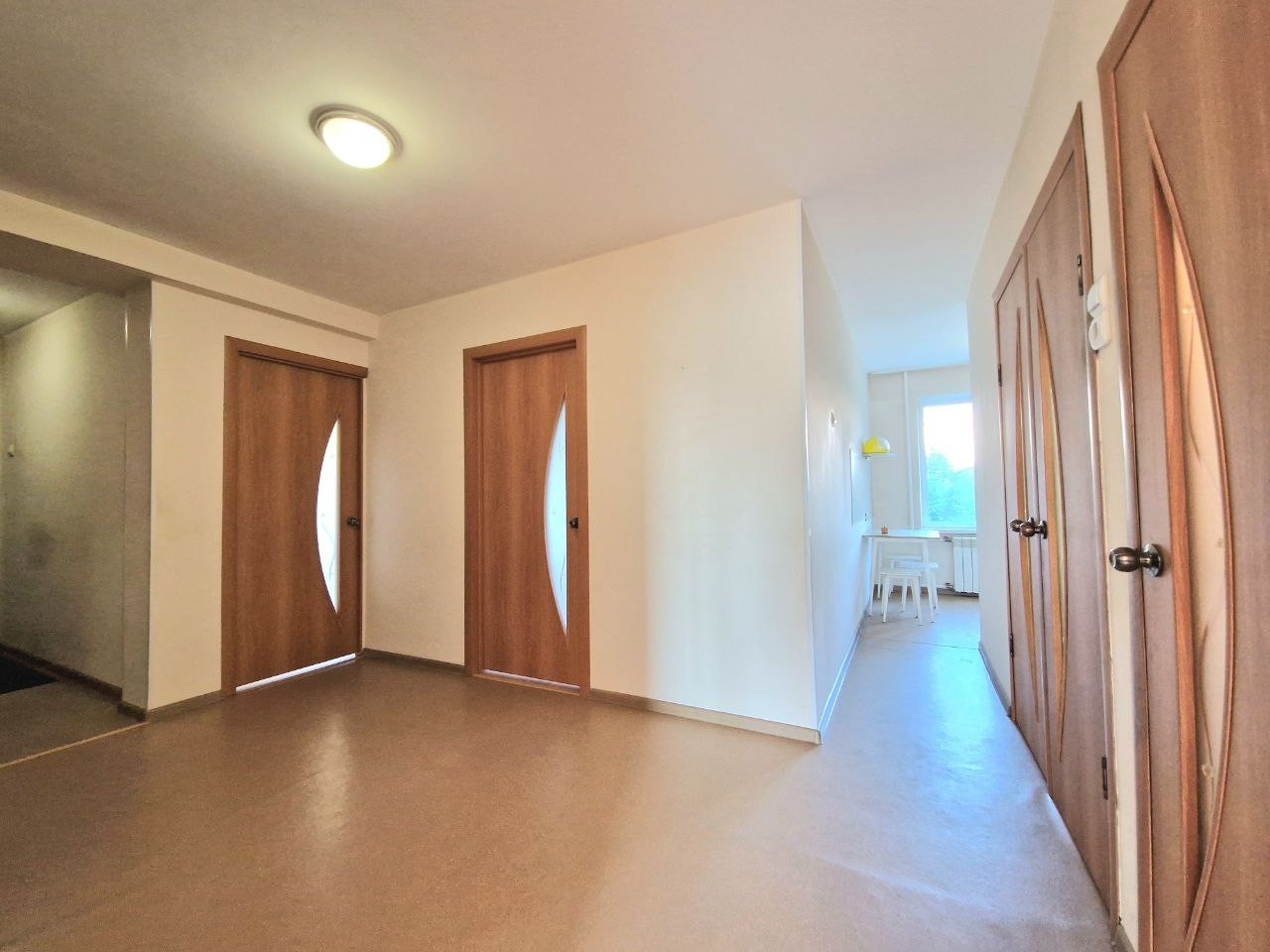 Стены и полы выровнены. Все комнаты разделены. Очень большой зал. Имеется кладовая.