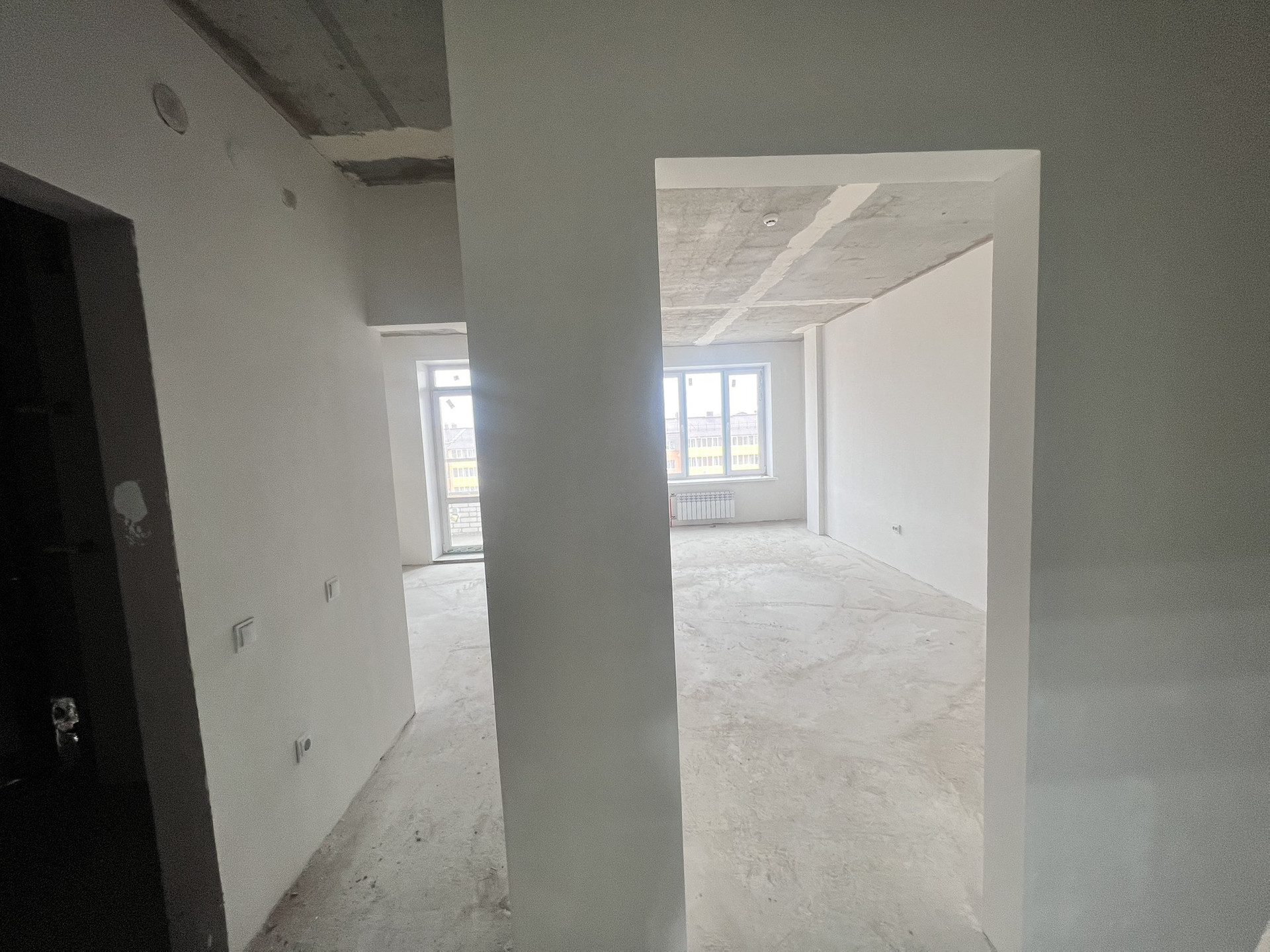 Квартира готова к ремонту: ровные вытянутые белые стены, на полу - стяжка, сертификат на потолок в подарок, розетки и выключатели стоят!