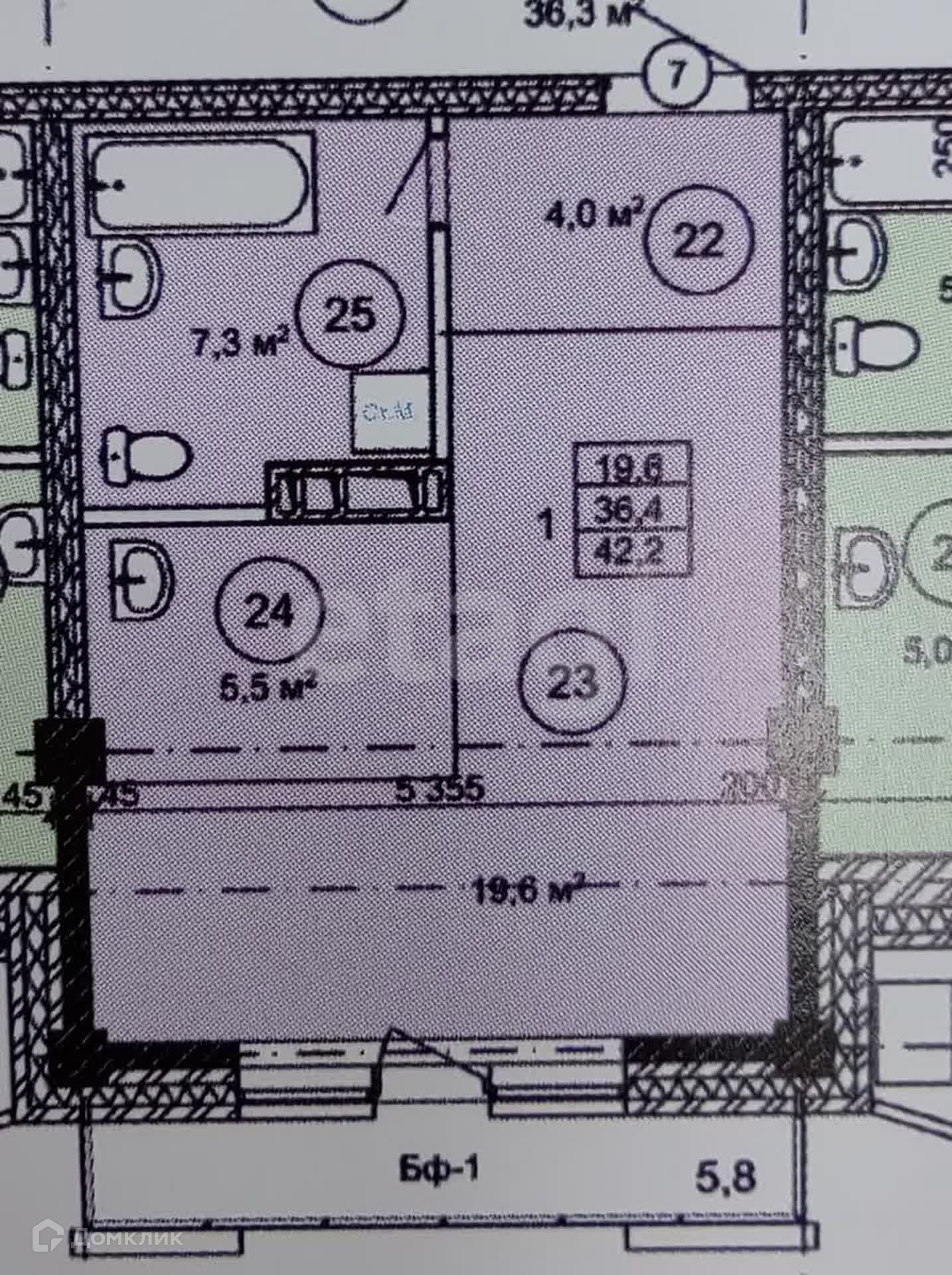 Общая площадь 43 м2