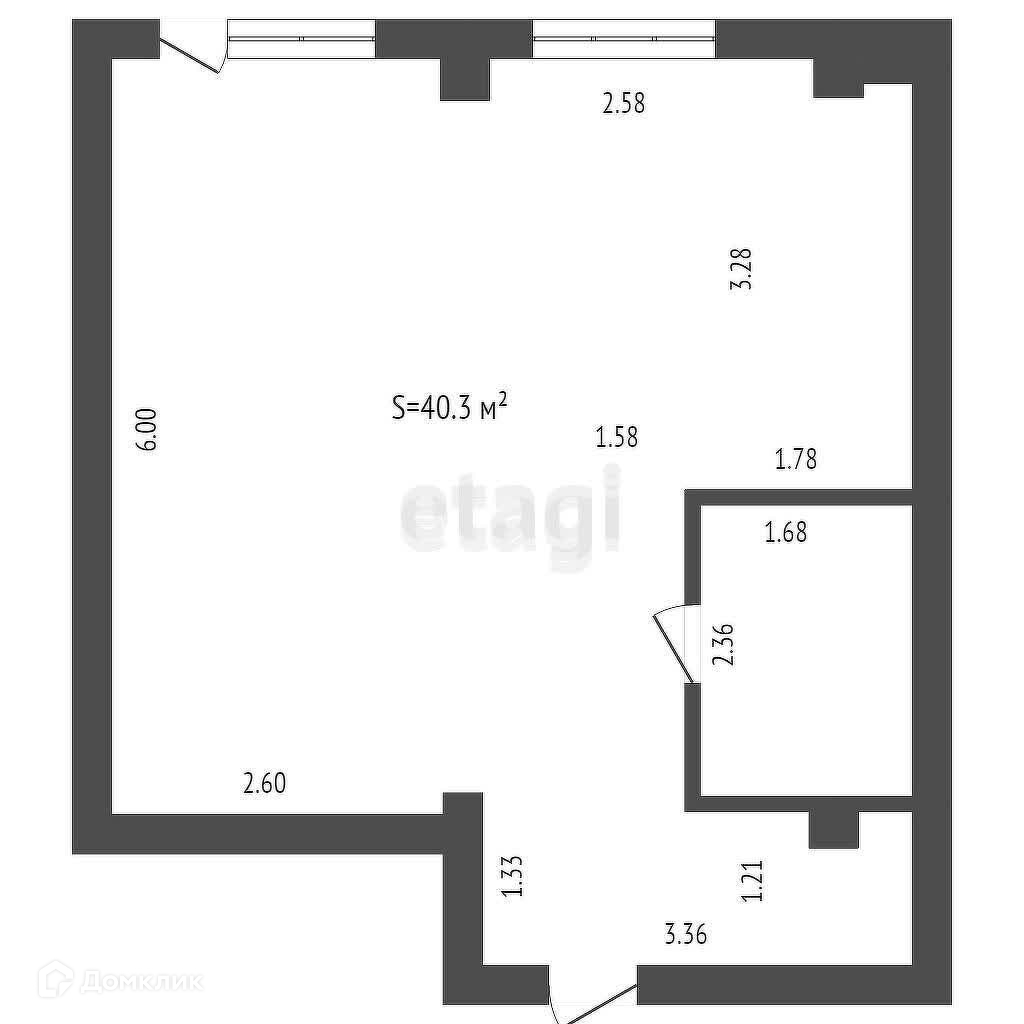 Общая площадь 40.5 м2