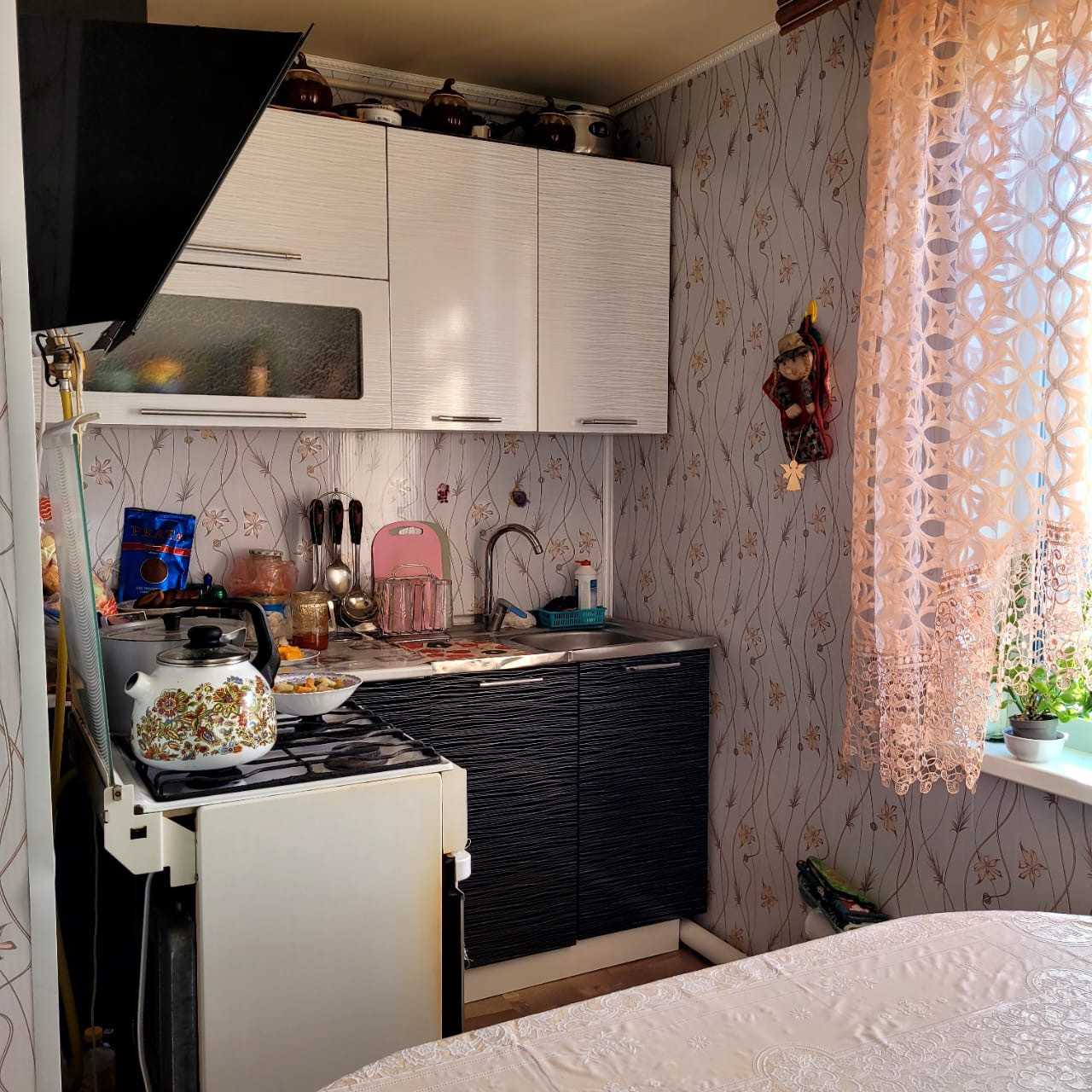 Дом шпальный,обшит вагонкой,крыша металлочерепица.В доме имеются все коммуникации,пластиковые окна. Есть баня,гараж,асфальтированный двор.Удобная планировка.Удобное месторасположение рядом школа,детский садик,магазины.
