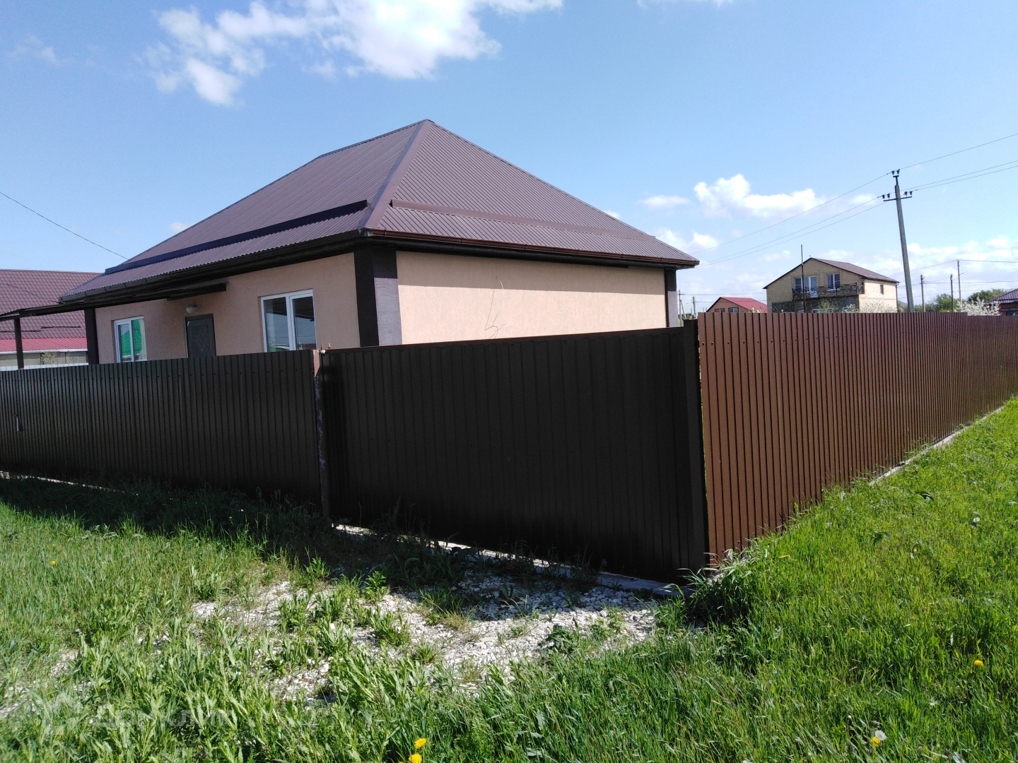 Новый блочный дом 2020 года постройки общей площадью 66,8 кв.м. на земельном участке 400 кв.м.. с отличной современной планировкой: коридор, кухня-гостиная с выделенной зоной кухни, 2 спальни, санузел. В доме теплый пол (плитка), стены отштукатурены под обои, натяжные потолки. Из гостиной есть второй выход в огород дома с возможностью строительства террасы. Санузел совмещен, на полу и стенах –плитка, установлена сантехника.
