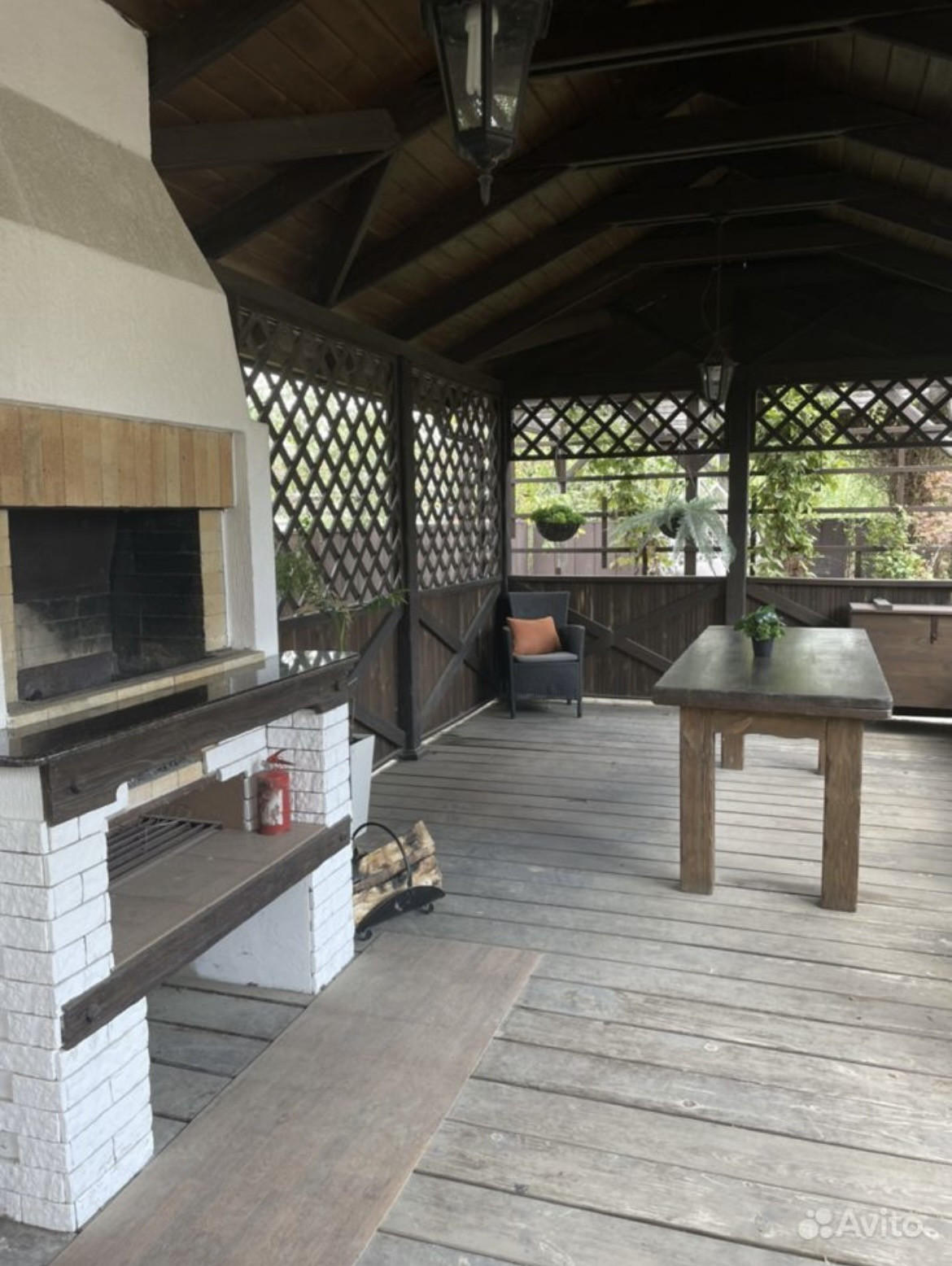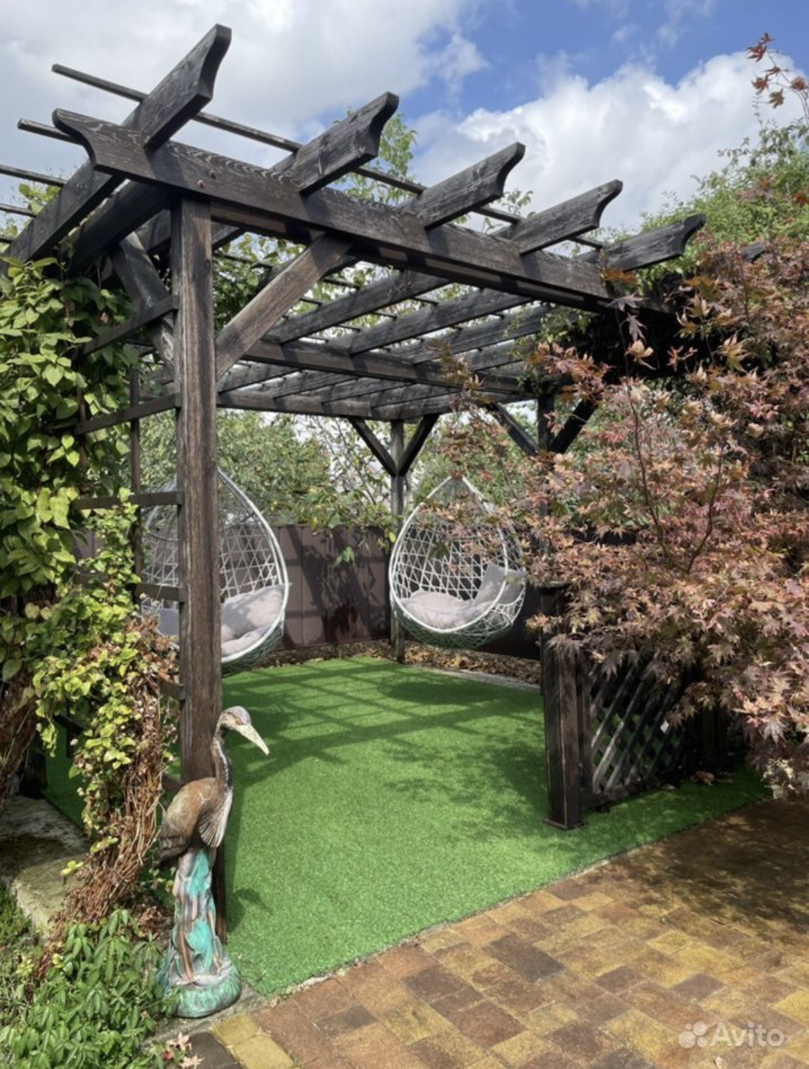 Пергола с подвесными кокон креслами;