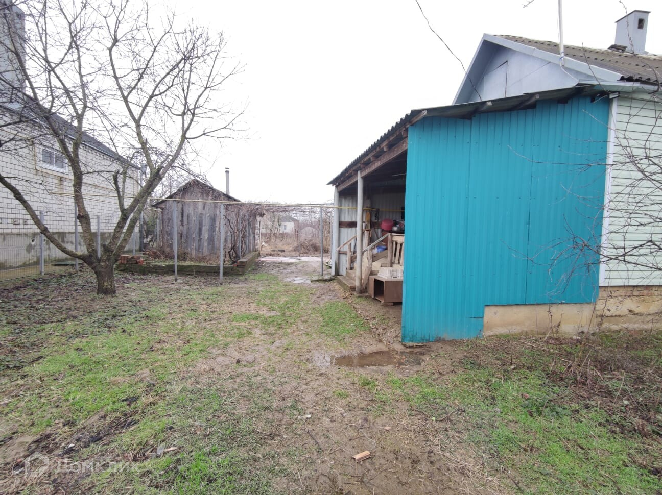 На сухом участке 8 соток (20 м на 40м) с плодовыми деревьями, виноградом и кустарниками.