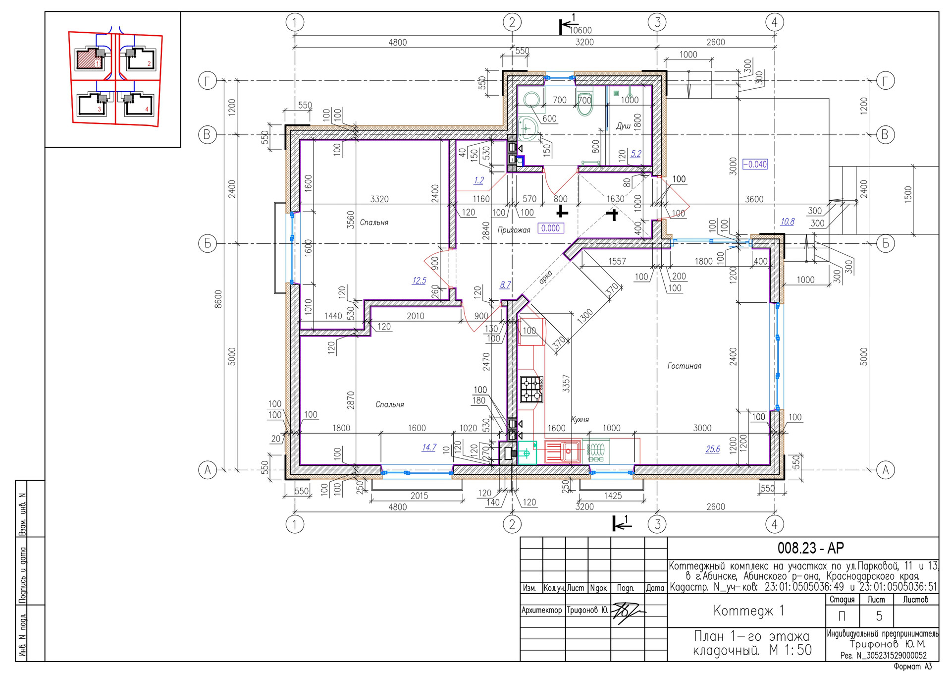 1-этажный дом, 67.9 м2, на продажу в Абинске, Парковая улица, 13