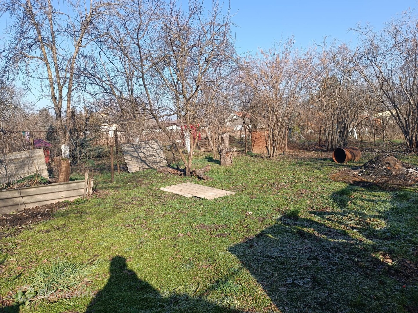 На участке гараж, подвал. Участок огорожен забором.