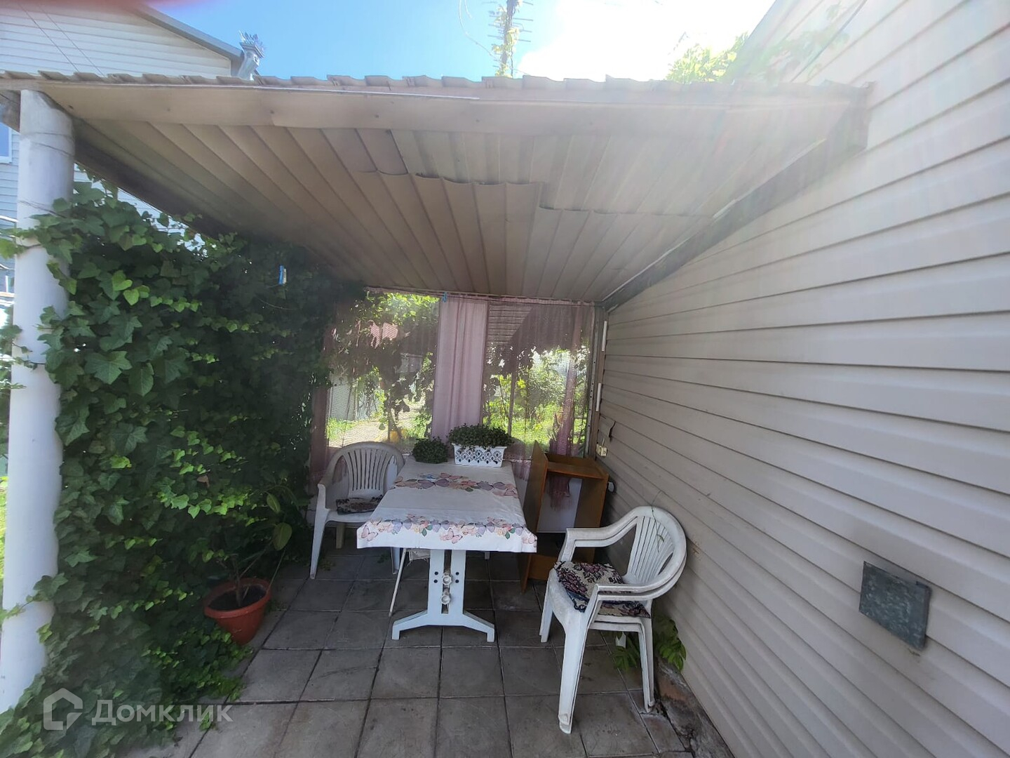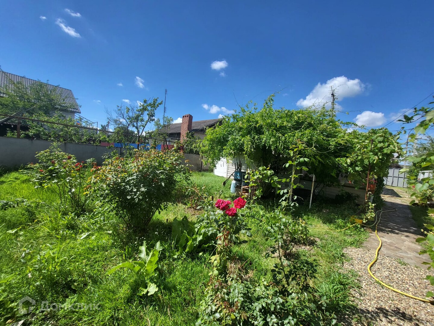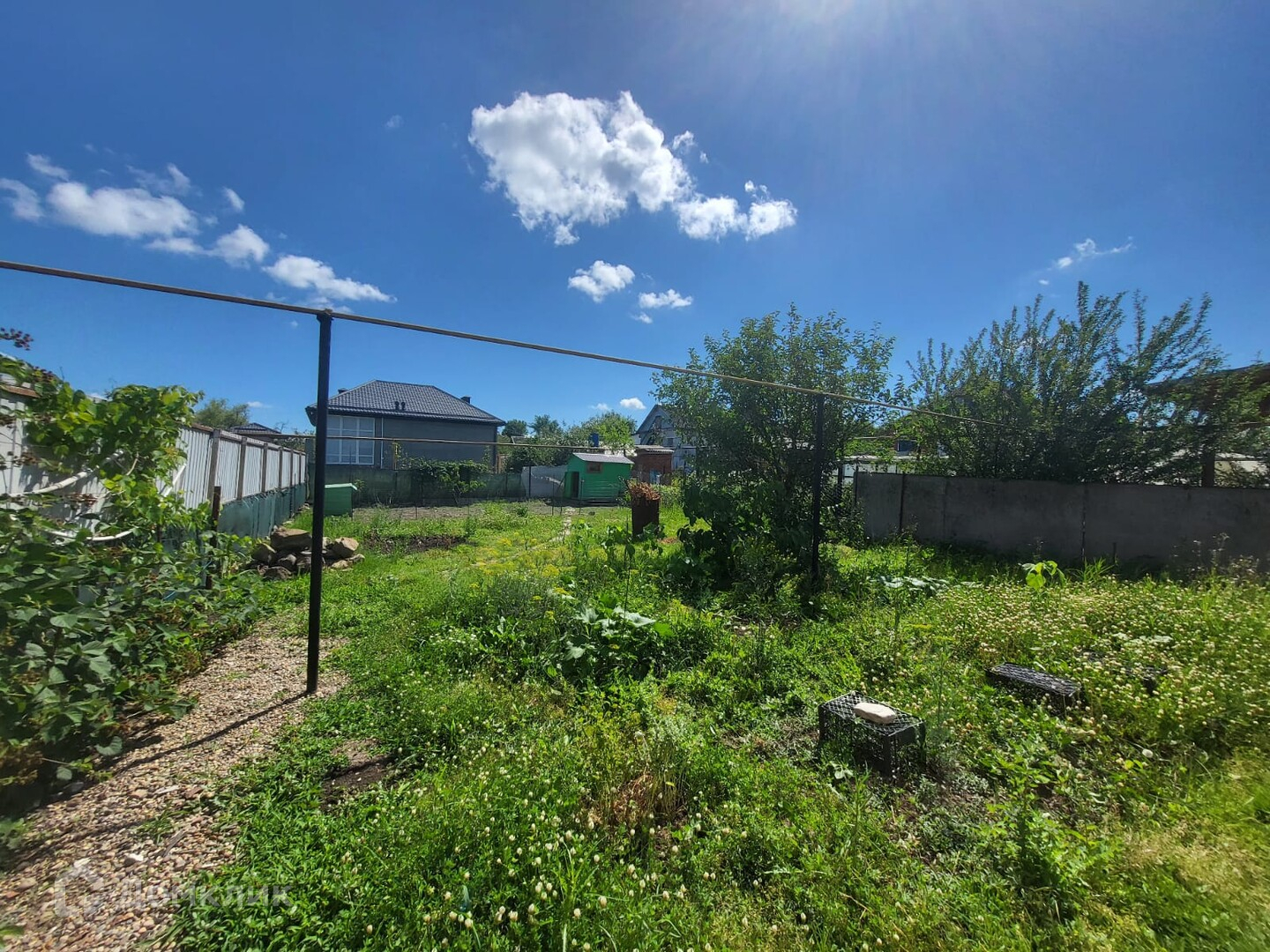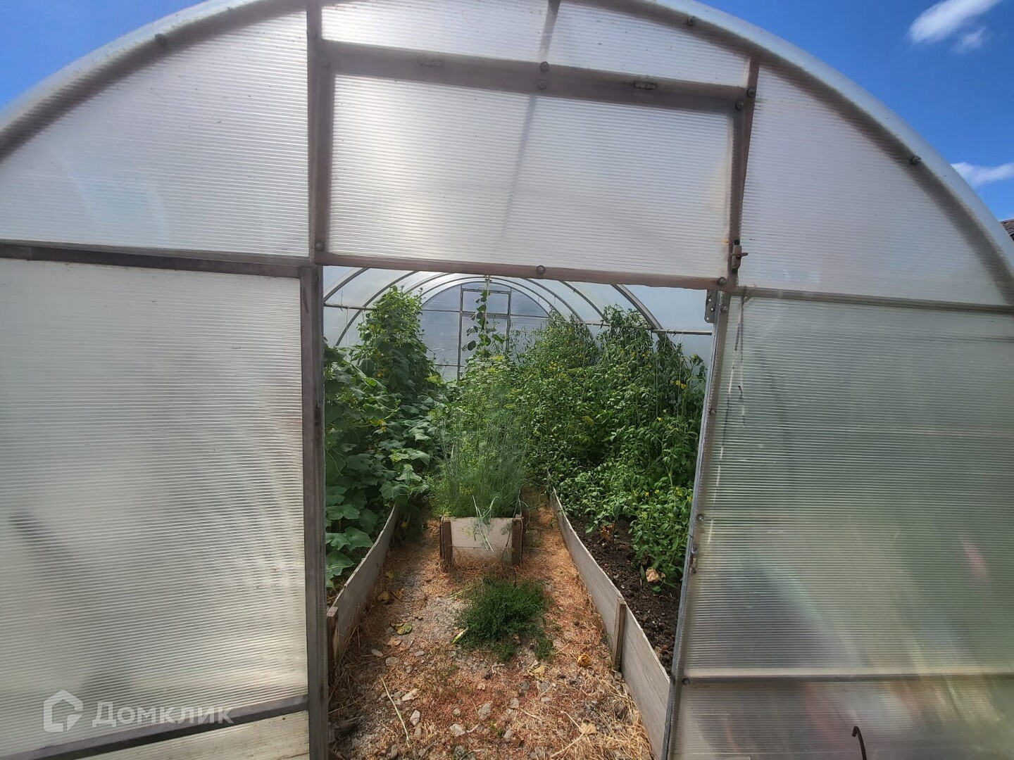 Двор вымощен плиткой , летняя беседка, хоз.постройки. Ухоженный огород с грядками и фруктовыми деревьями, теплица.