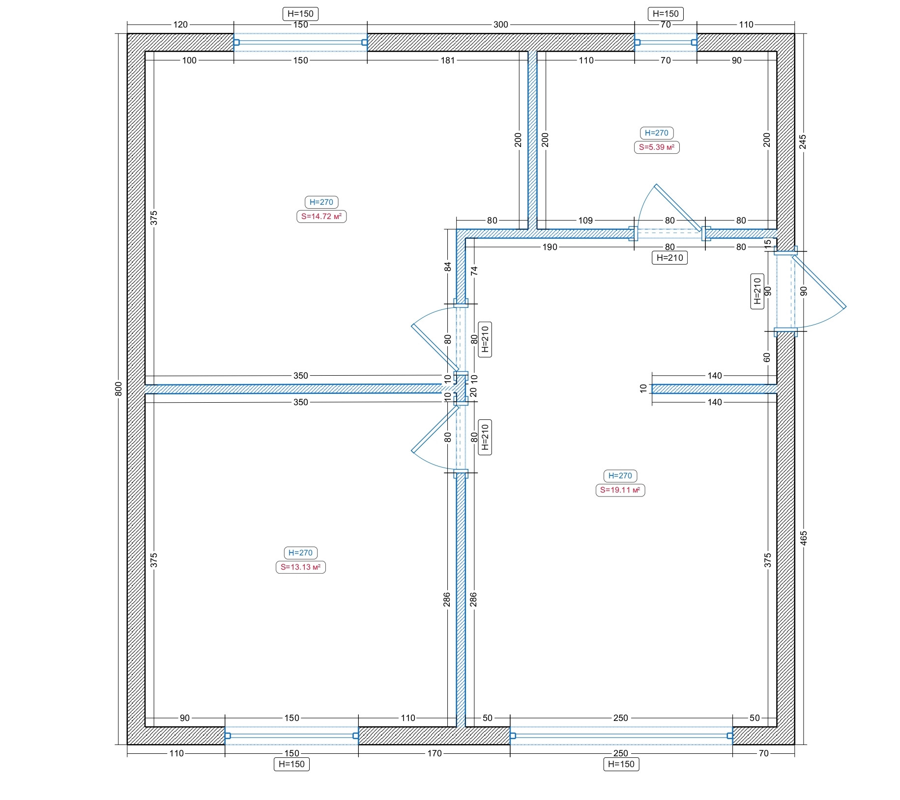 Общая площадь 56 м2