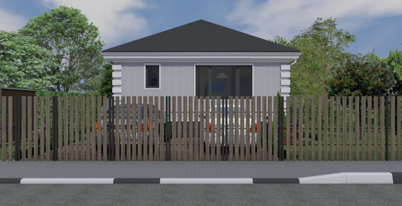 - Забор по периметру участка из профлиста и штакетника