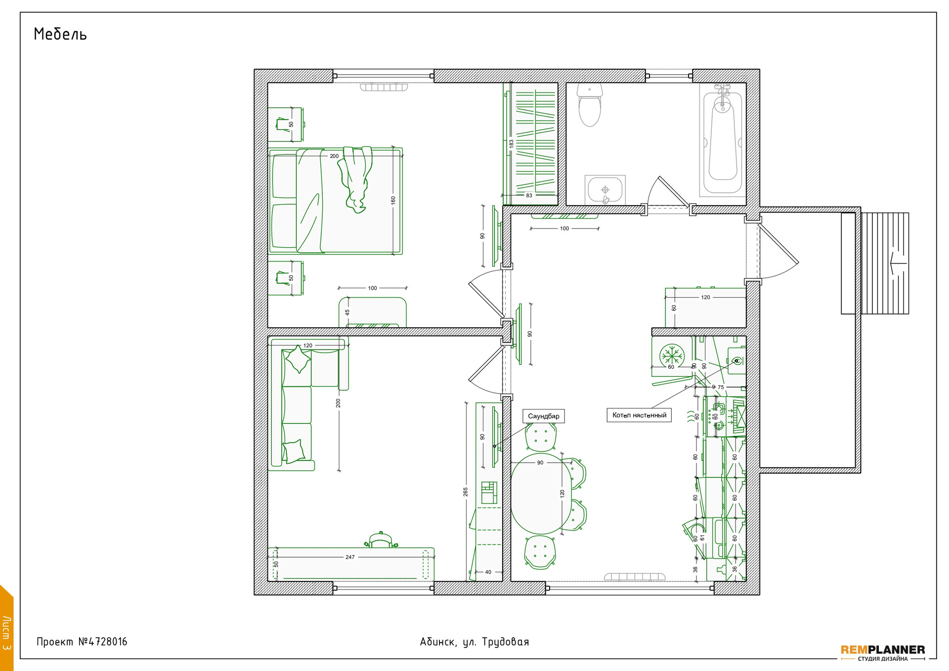 Общая площадь 60 м2