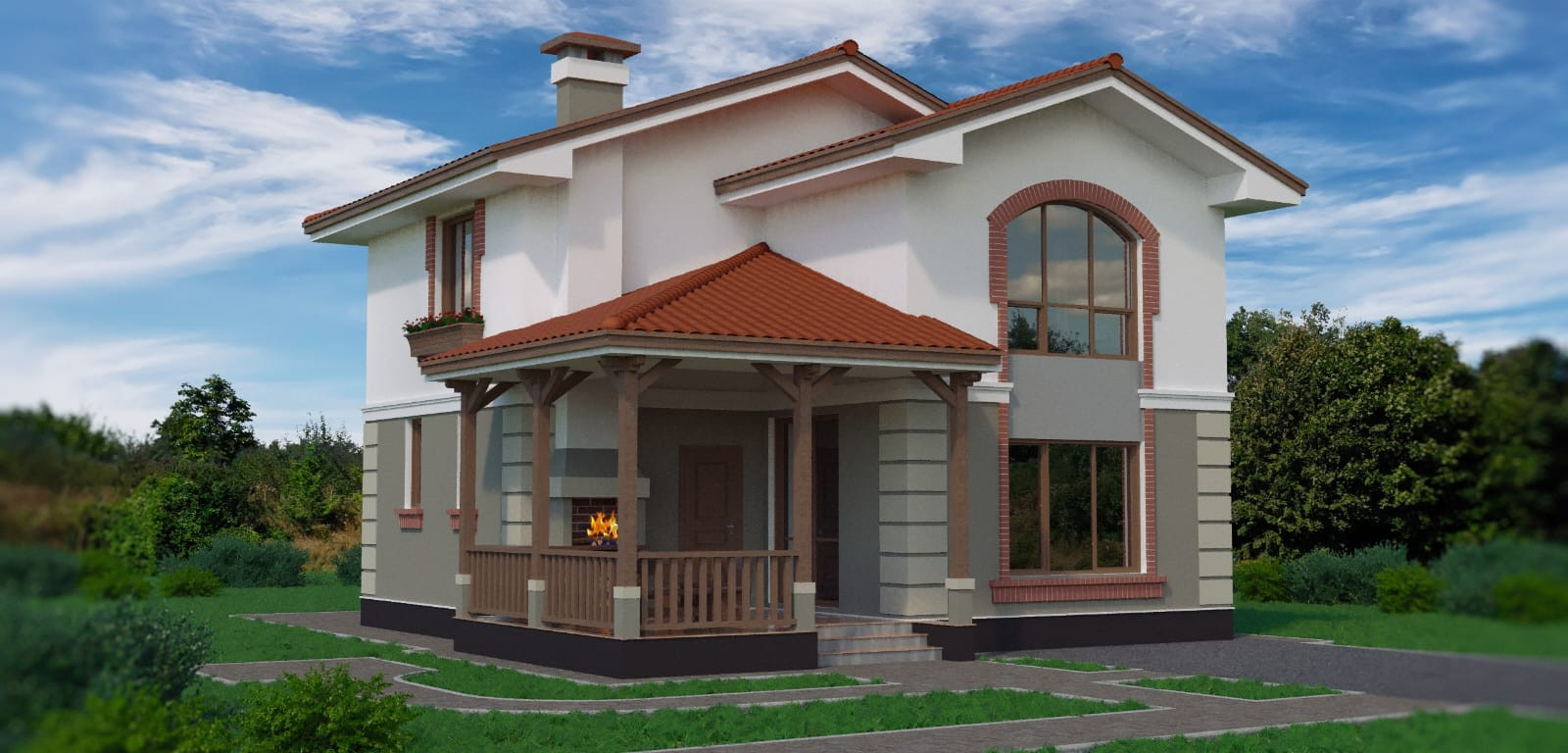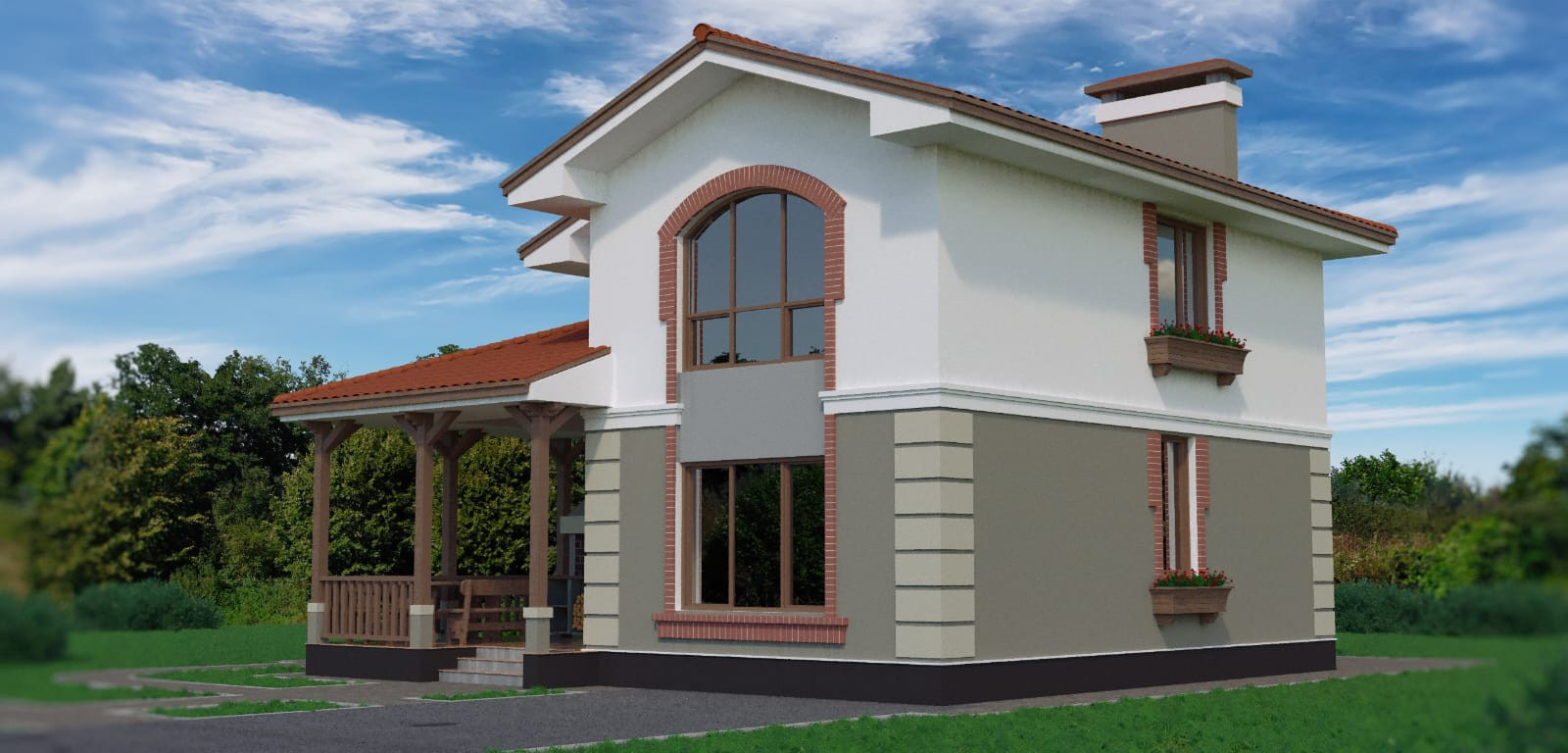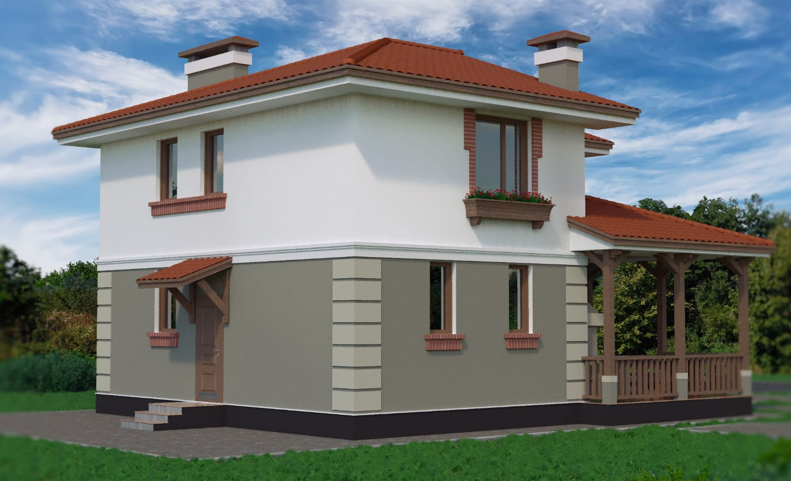 - Внешние фасады отделаны утеплителем и декоративными элементами