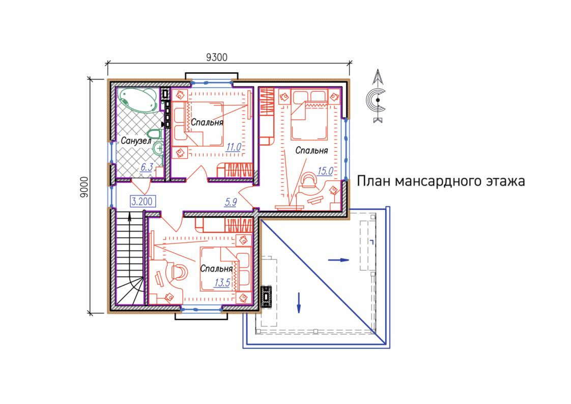 - Крыша отделана металлочерепицей