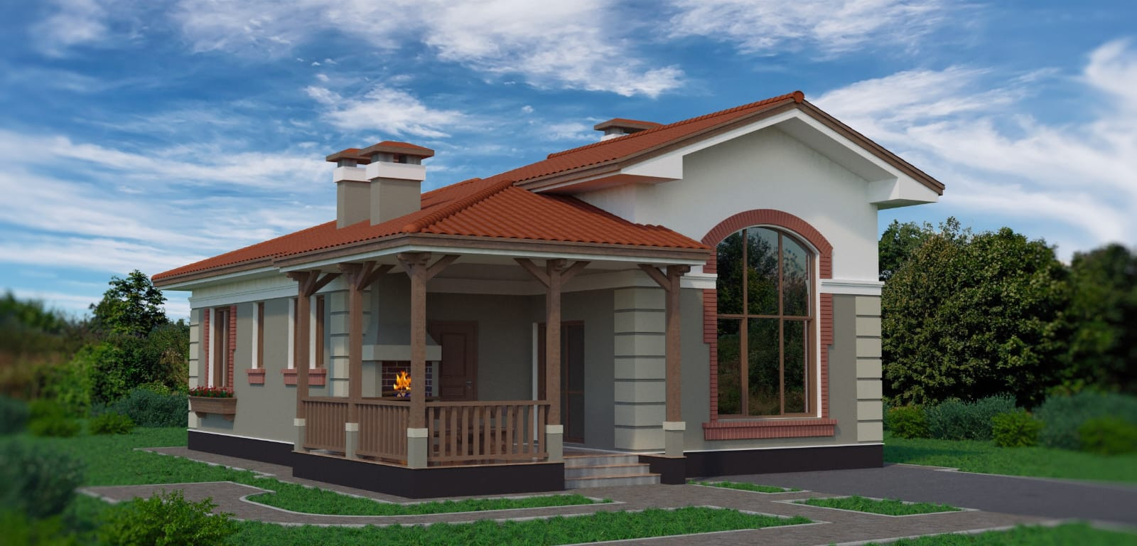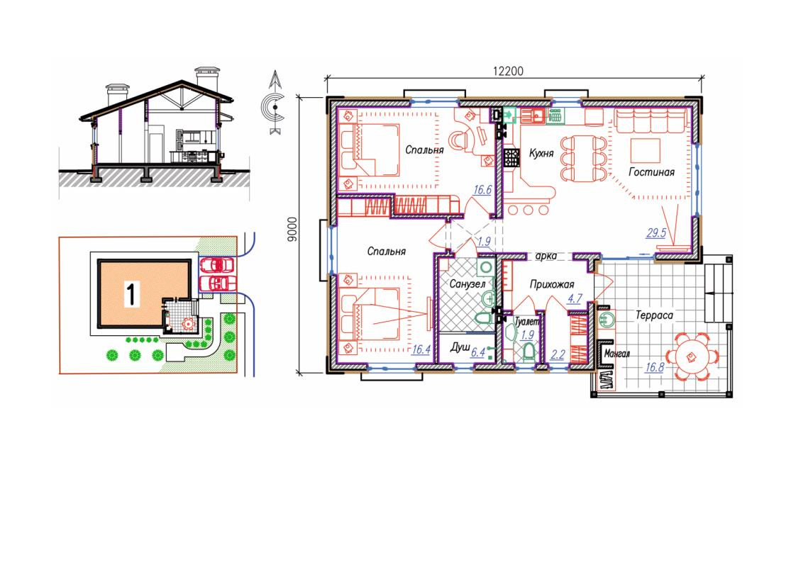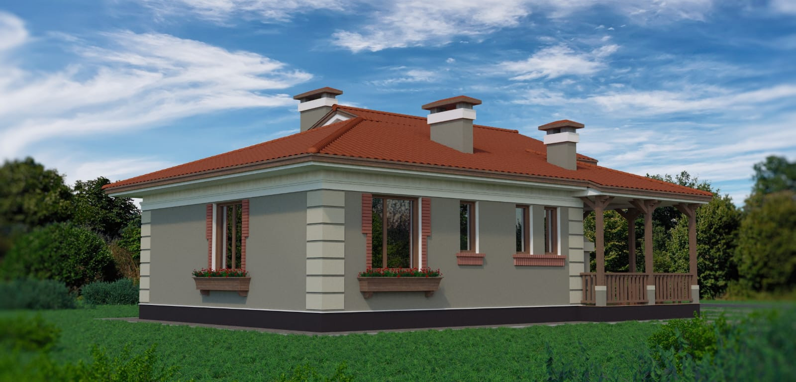 Одноэтажный дом площадью 79,6м2 с открытой террасой 16,8м2.