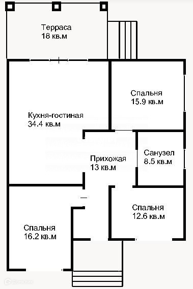 просторная кухня-гостиная с выходом на террасу, санузел, прихожая.