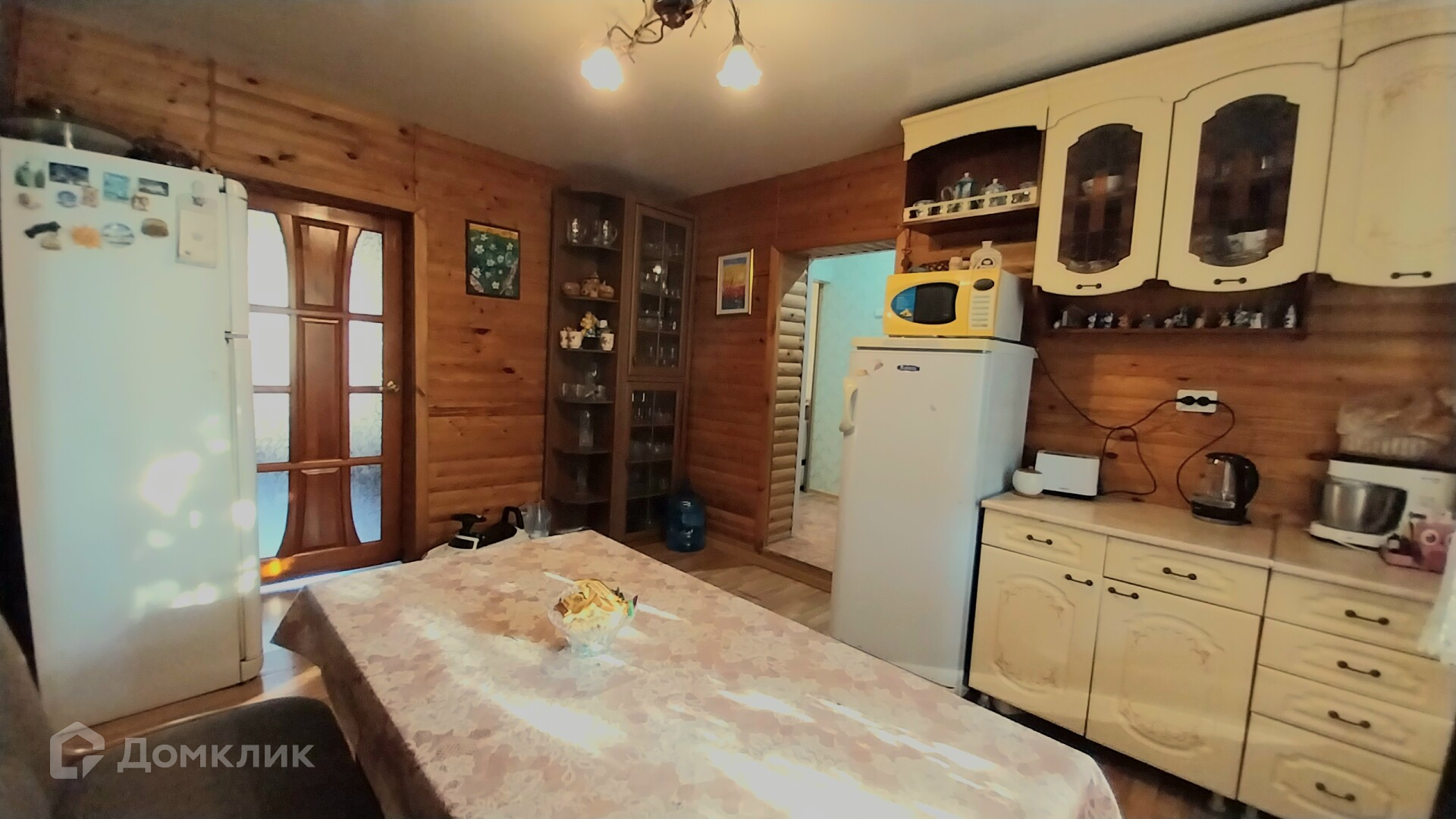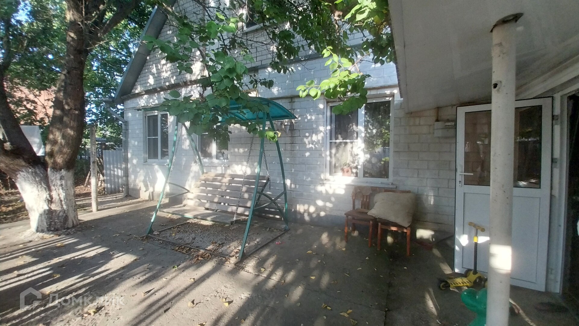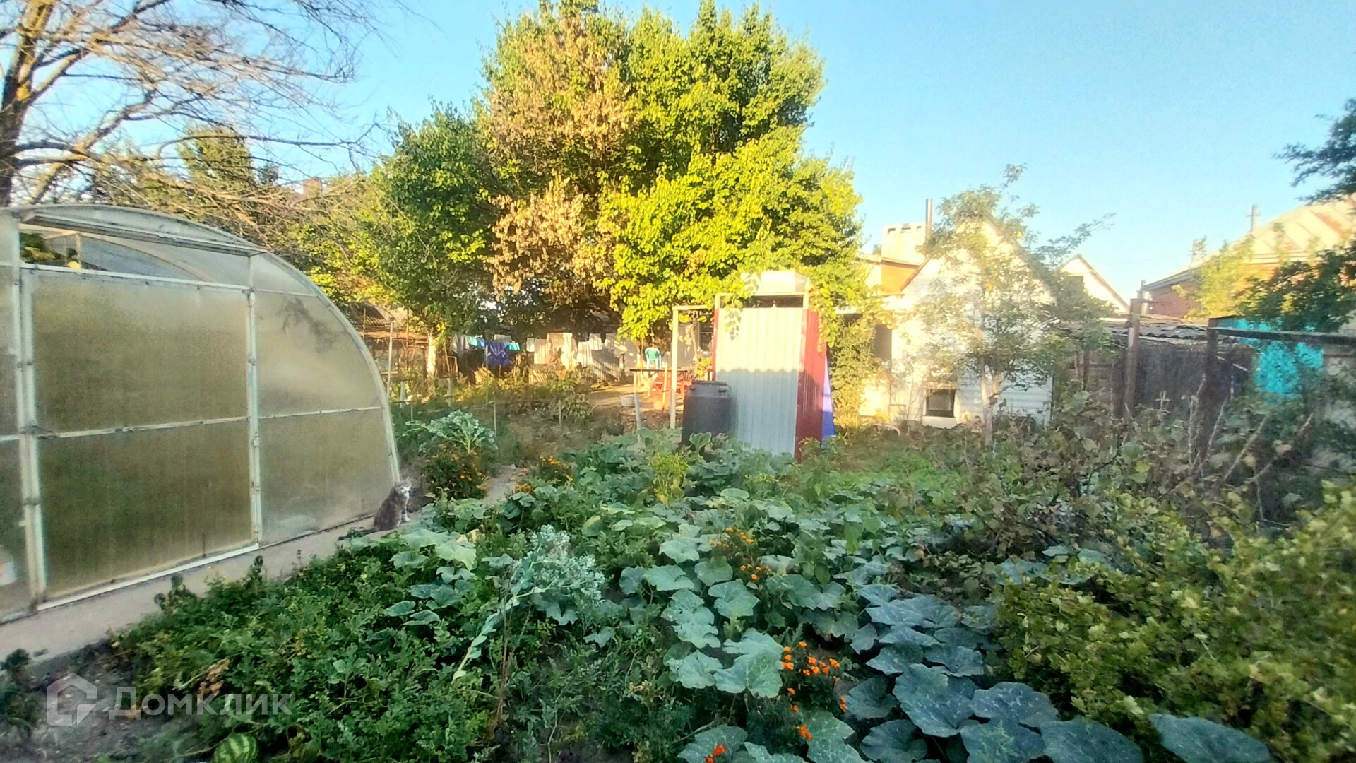 На заднем дворе открытая летняя кухня под навесом, с подведенным газом и водой.Теплица, добротный хозблок из кирпича, уличный туалет и душ.Забетонированная площадка перед домом и большая зона отдыха за домом. Отмостка.Забетонированные дорожки.Забор – вкруг, ворота распашные.Гараж 6*4м из кирпича.