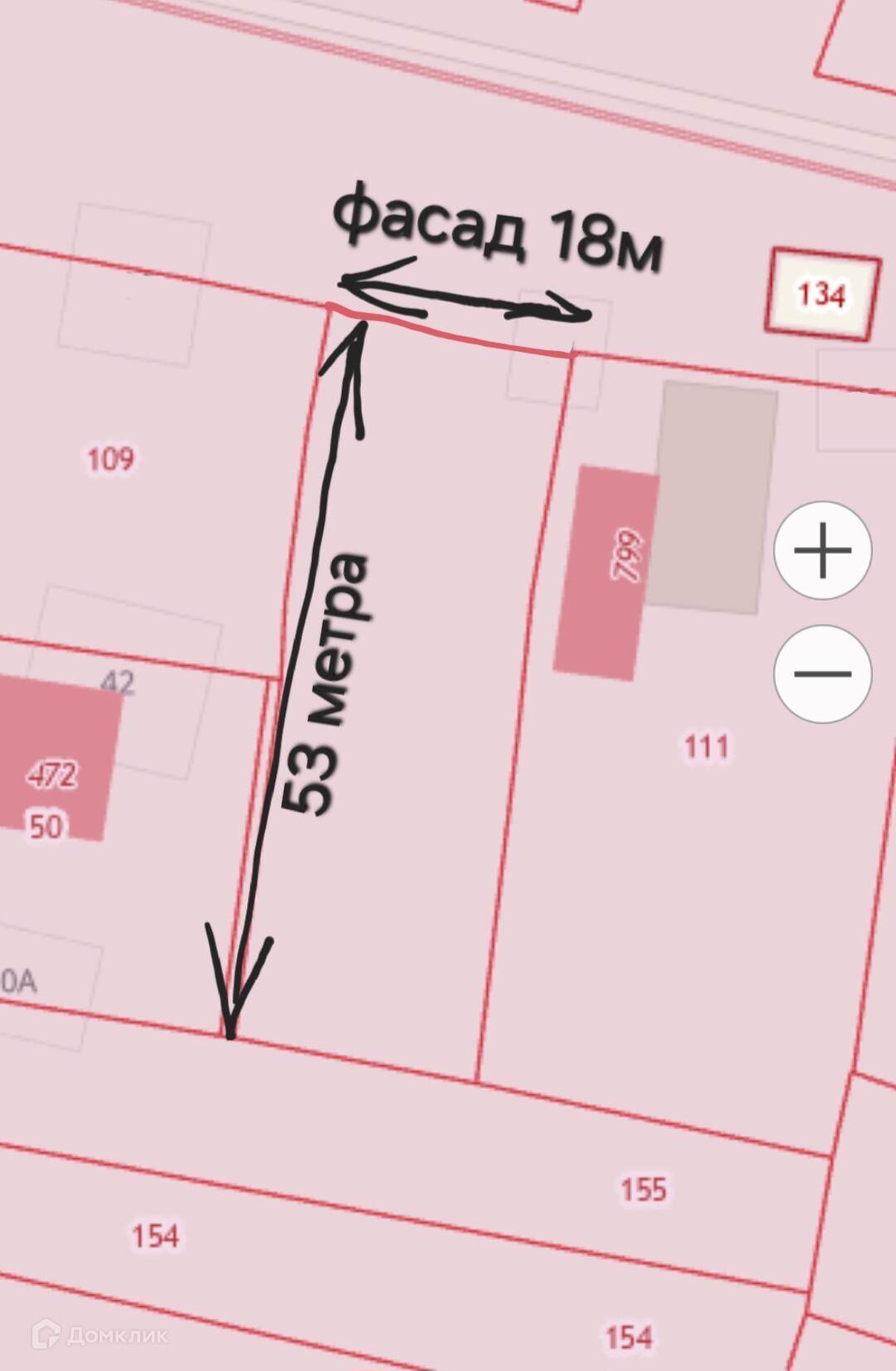 Домик и кухня под снос. Участок фасад 18м, в глубину 53м, хорошая придомовая территория и расположение участка.