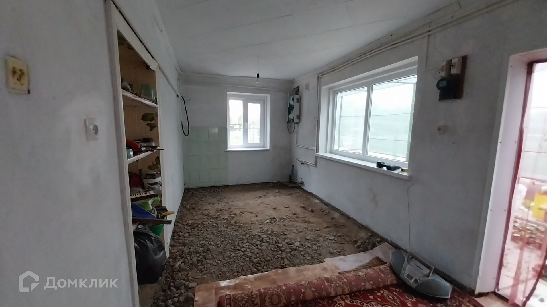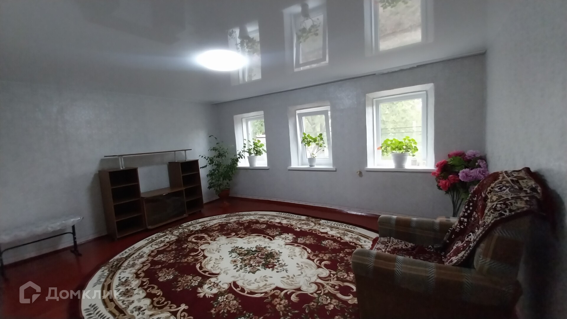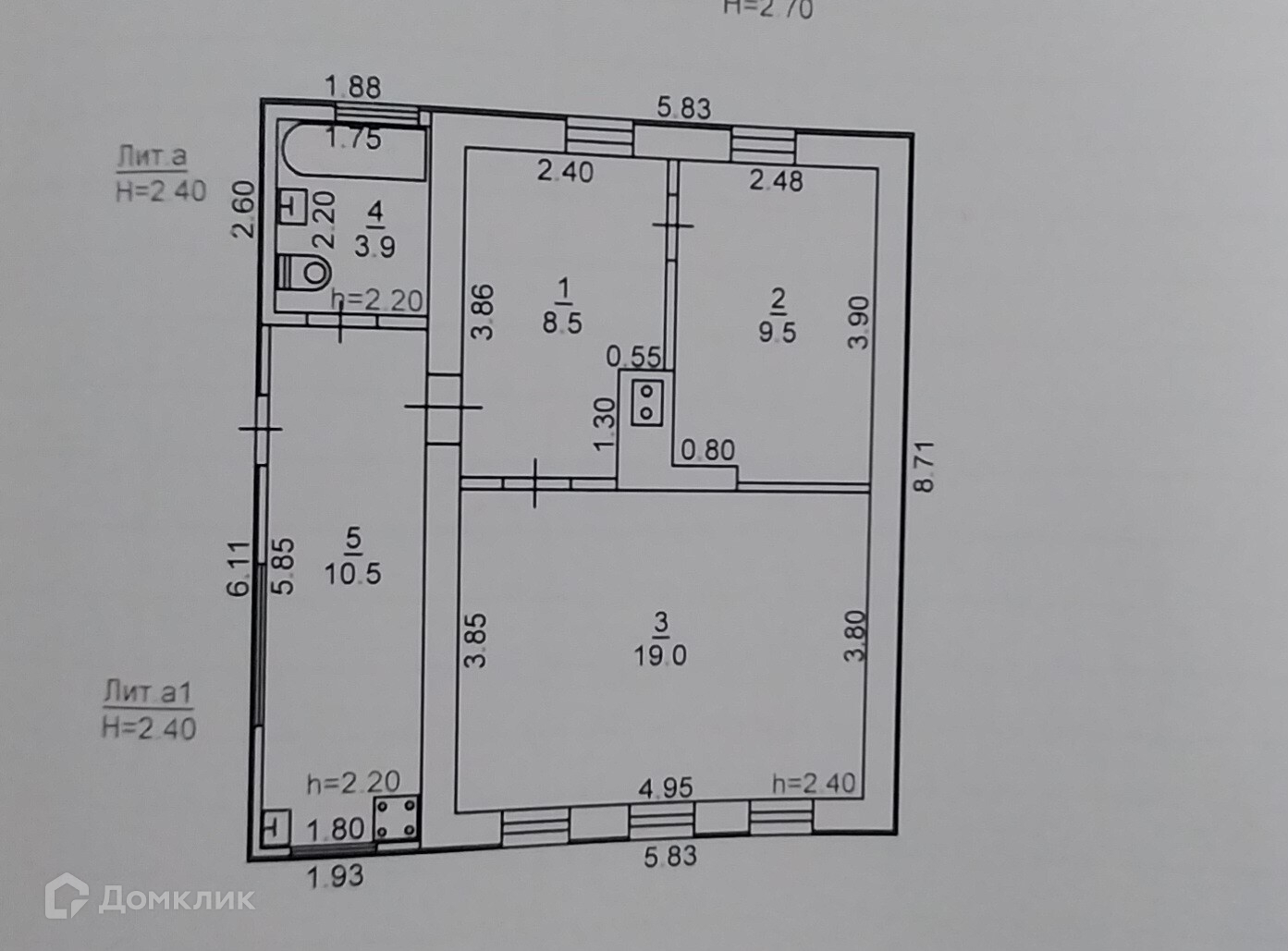 В доме 3 комнаты: 2 изолированные (9,5 кв.м. и 19 кв.м.), проходной зал (8,5 кв.м.), кухня (10,5 кв.м.), совмещенный сан/узел (3,9 кв.м.). Материал стен: саман под сайдингом, крыша-шифер, окна пластиковые,