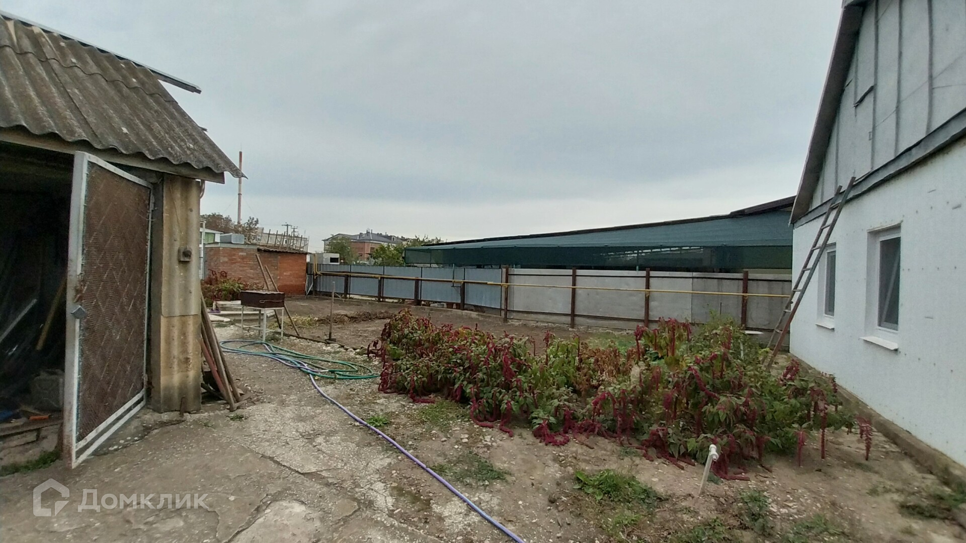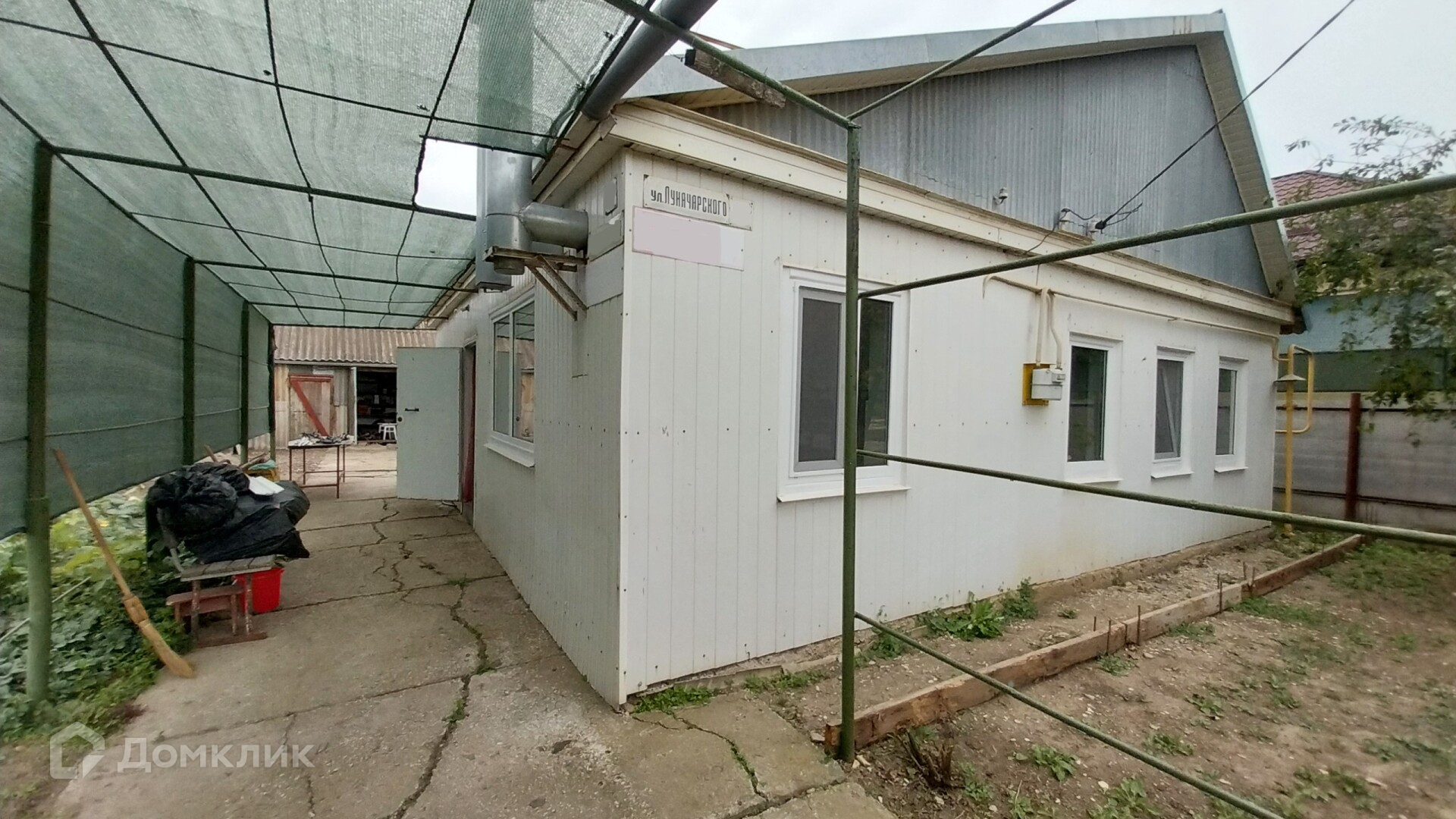 Обширная придомовая территория с местом для парковки.