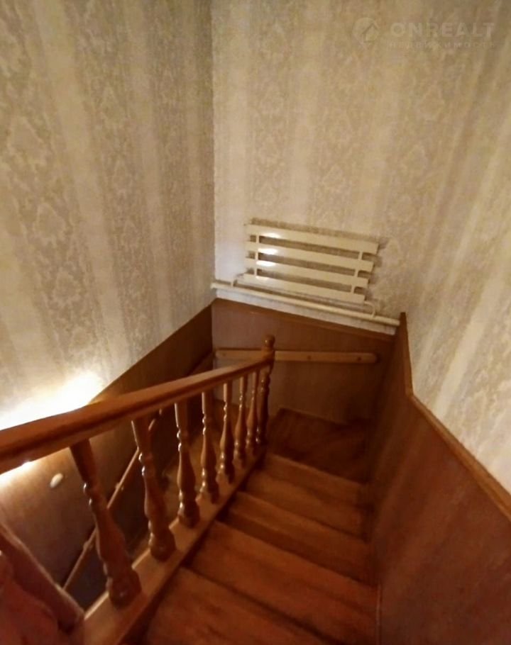 Лестница на второй этаж деревянная, двери из массива.