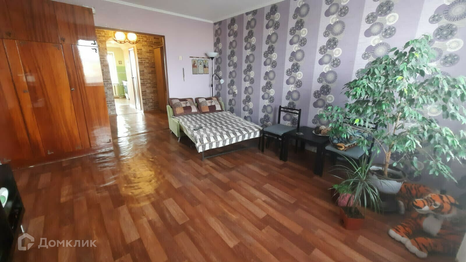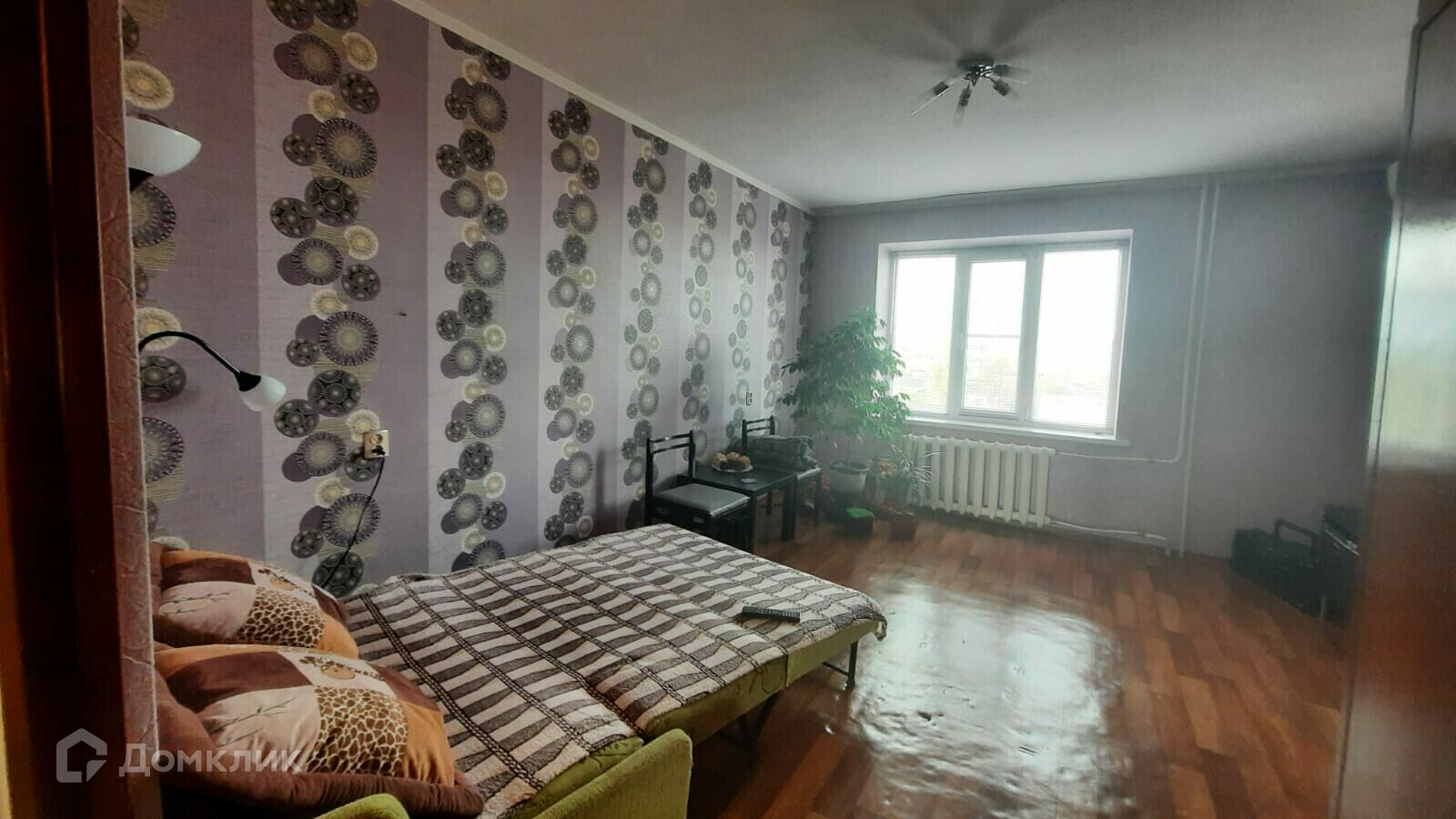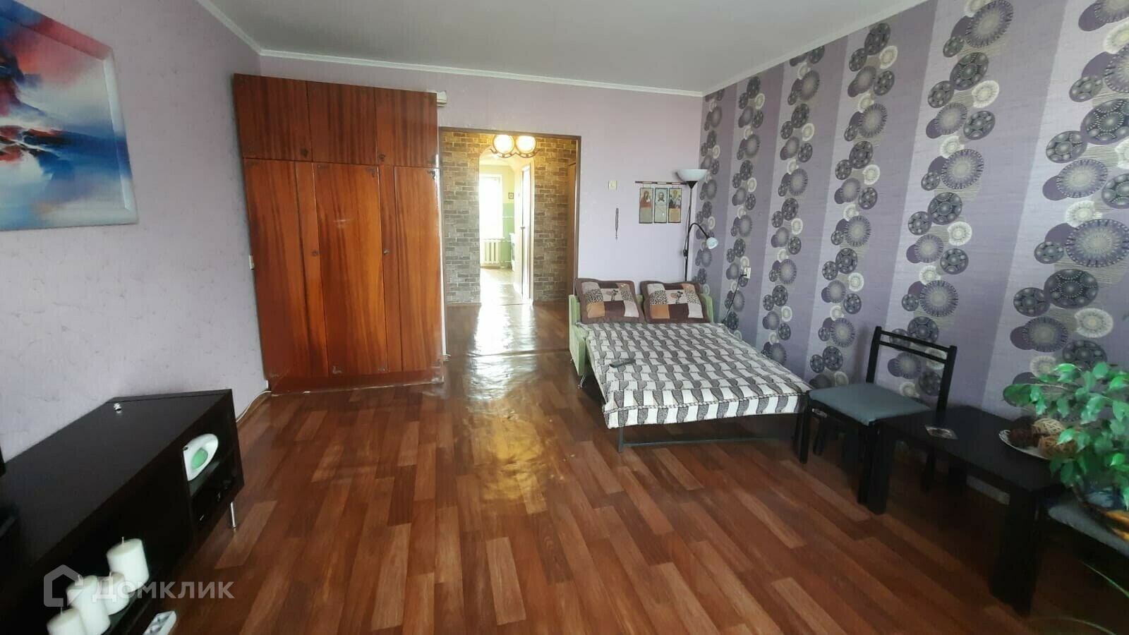 Комната большая (17 кв.м.), широкая, стены ровные, во всей квартире новая электропроводка.