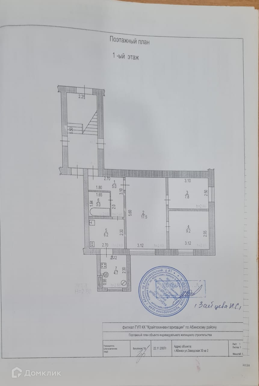 3-комнатная квартира, 53.4 м2, этаж 1 / 2, на продажу в Абинске, улица Парижской Коммуны, 16