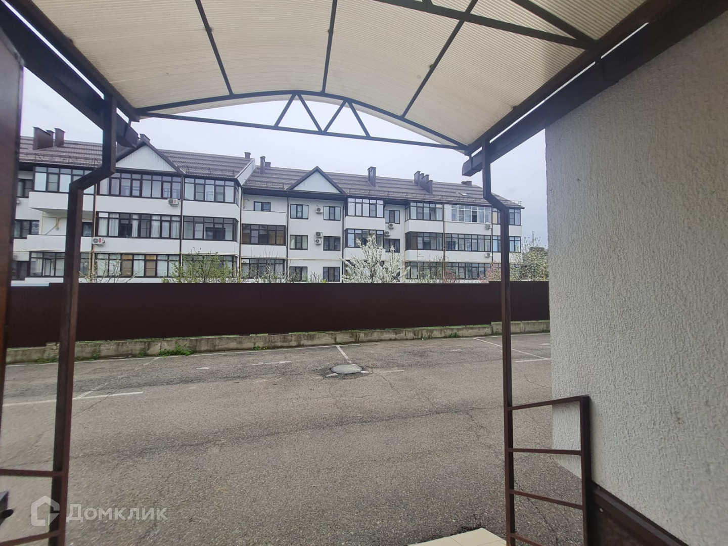 Дворовая территория огорожена забором.
