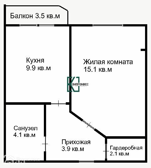 3.9 кв.м. и гардеробной 2.1 кв.м. Квартира не угловая, В квартире установлен газовый котел, сплит система.