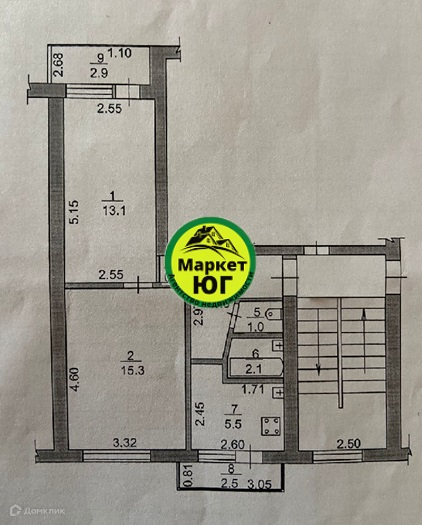 номер объекта 7714 Продается 2-х комнатная квартира в центре г Абинска общей площадью 42.3кв.м.Дом кирпичный,коммуникации все центральные.Комнаты 13.1,15.3кв.м,кухня 5.5кв.м,коридор 4.8кв.м,ванная комната 2.1кв.м,сан.узел 1.0кв.м,балкон 2.5кв.м,лоджия 2.9кв.м,шкаф 0.5кв.м.В квартире выполнен частично ремонт.Окна на две стороны.в шаговой доступности школа,детский сад,сетевые магазины, учреждения и организации Объект №52536-6646.