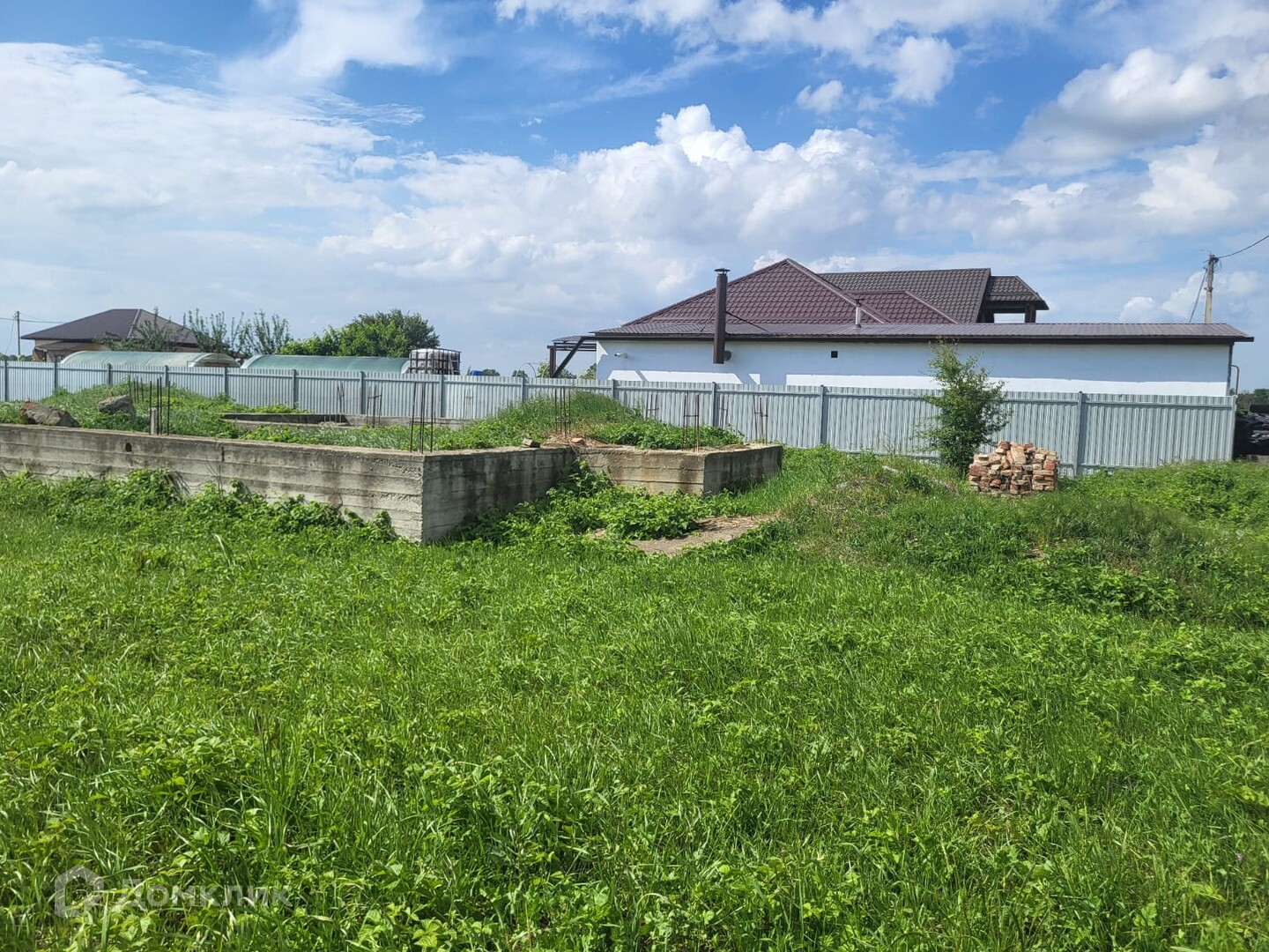 - Общая площадь: 8 соток. На участке залит фундамент площадью 90 кв.м.