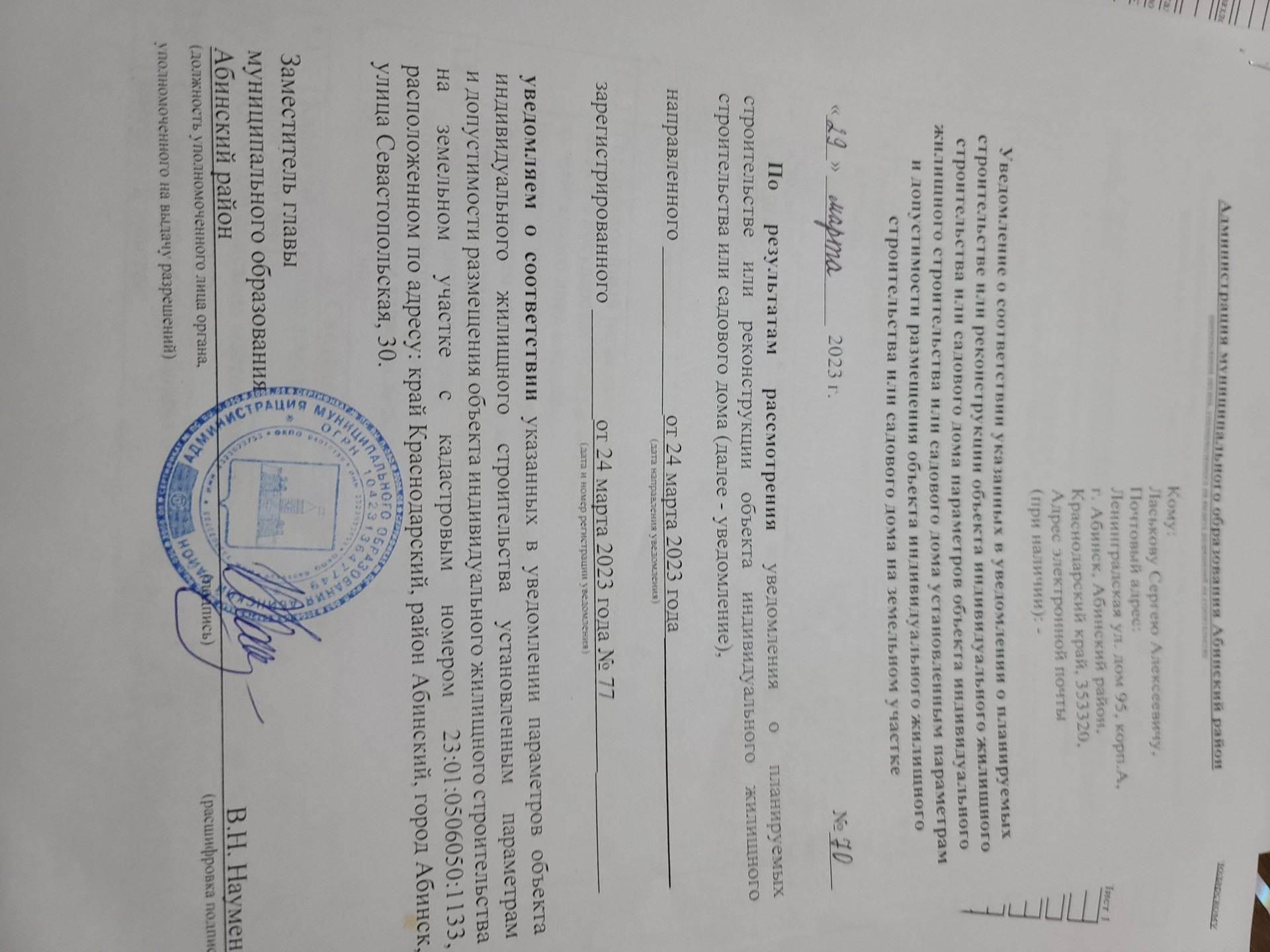 Объявление от застройщика.