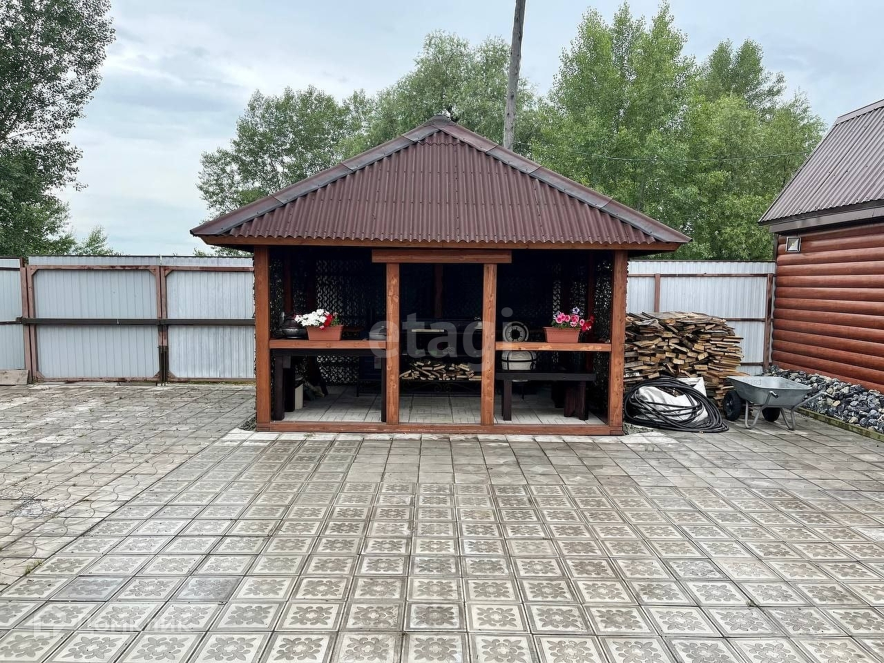 Предлагаем к продаже недалеко от города в 10 минутах езды шикарную усадьбу, подойдет как для постоянного проживания и как вариант дачи. На участке 17 соток построен большой 2 этажный дом из бруса в виде шестигранника, утеплен и отделан сайдингом. Первый этаж в чистовой отделке, санузел и 2 этаж в ремонте. В доме установлен котел, есть своя котельная, скважина, фильтрационная станция, стабилизатор напряжения, окна пластиковые, чугунные радиаторы . Дом просторный уютный и теплый. На территории построен гараж из бруса 6х8 утеплен, обшит сайдингом ( под 2 машины), рядом с гаражом есть мангальная зона ( при продаже мангал, тандыр остается новому собственнику) Большая баня из сруба сосны, обшита вагонкой из осины, отдельно септик . В бане выделена большая комната под зону отдыха, парилка, моечная. При продаже в доме и бане остается вся мебель. Для хранения урожая сделан новый насыпной погреб. Двор выложен тротуарной плиткой, большая площадь участка позволяет воплотить все дизайнерские ландшафтные решения. Свет круглый год, зимой дороги чистятся от снега. Один собственник, подходит под любой вид расчета.