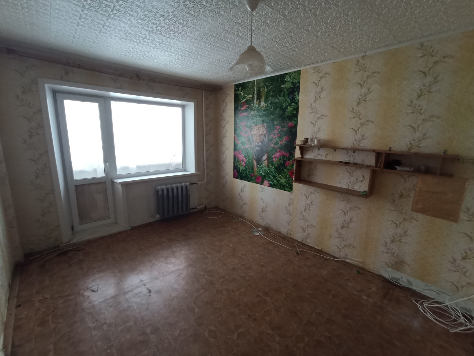 Комната с балконом. Требуется частичный ремонт. Установлено окно ПВХ, балкон застеклён. Душ находится на первом этаже, туалет и умывальники на каждом этаже.