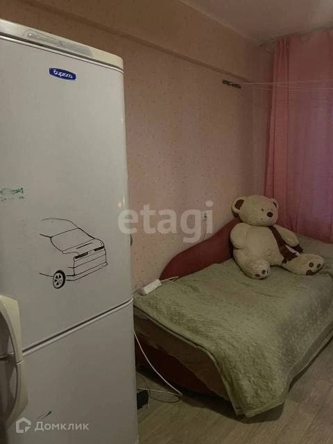 Вся инфраструктура в шаговой доступности - магазины, больница, техникум, школа. В комнате остается холодильник, стол, шкаф, софа, тумба.