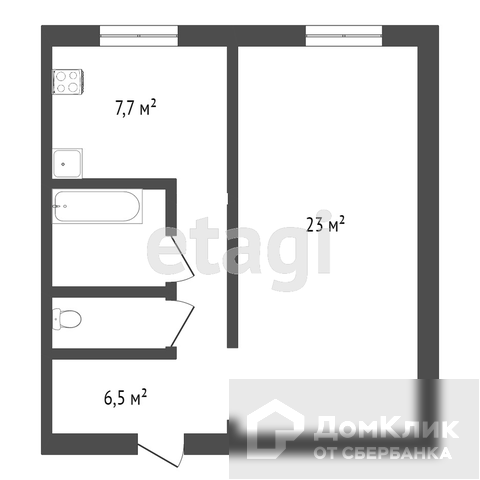 Общая площадь 44.3 м2