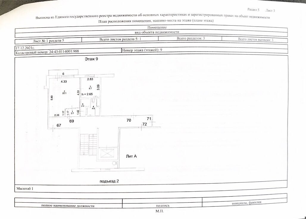 Общая площадь 39.8 м2