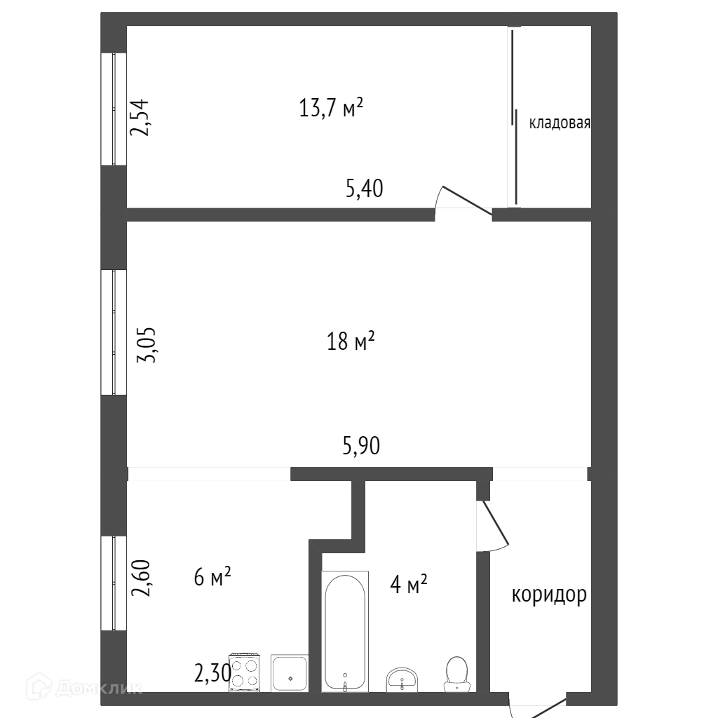 Площадь кухни 6 м2