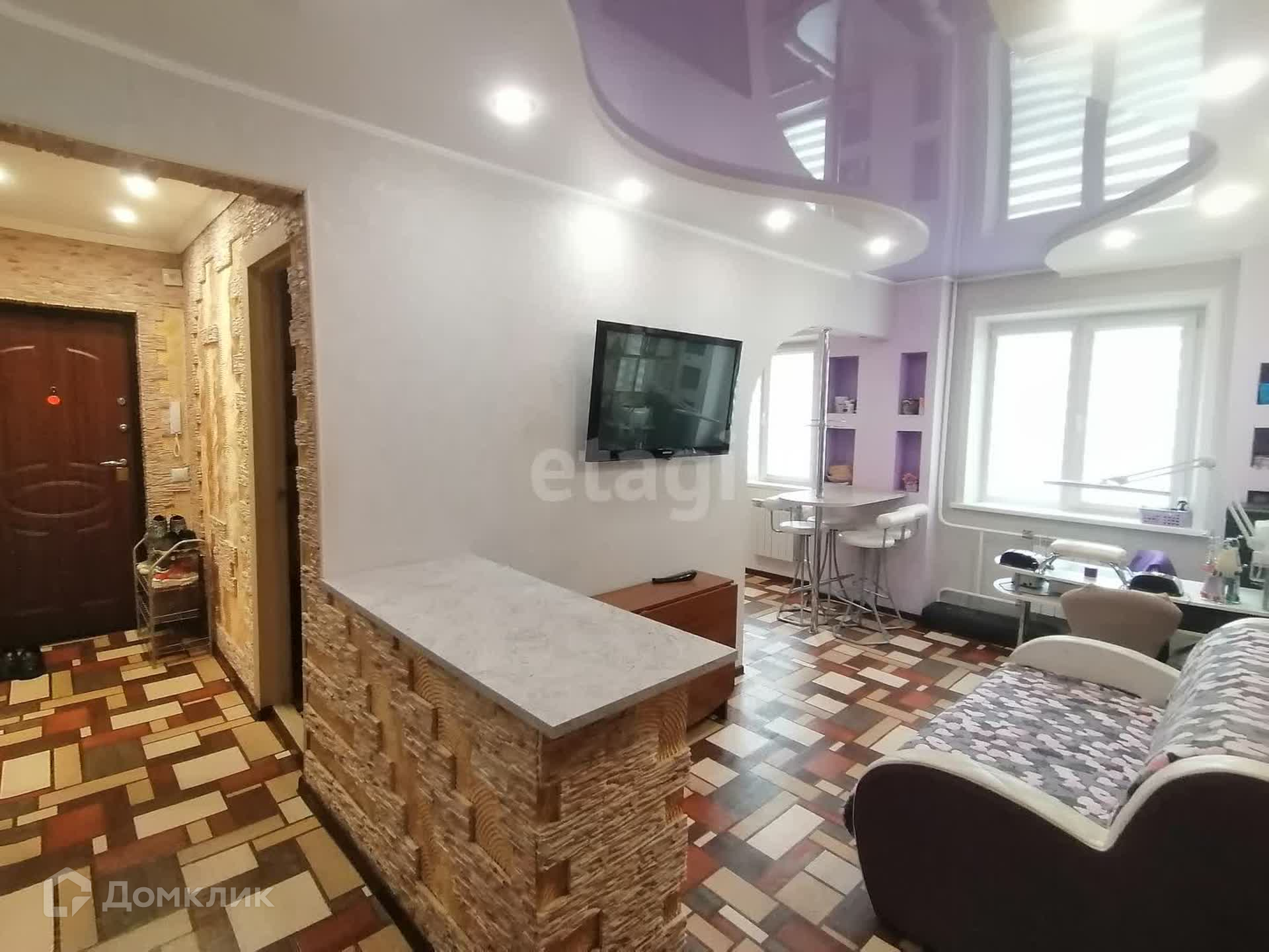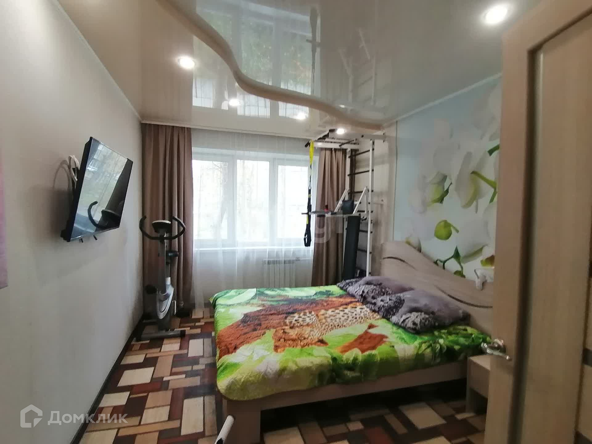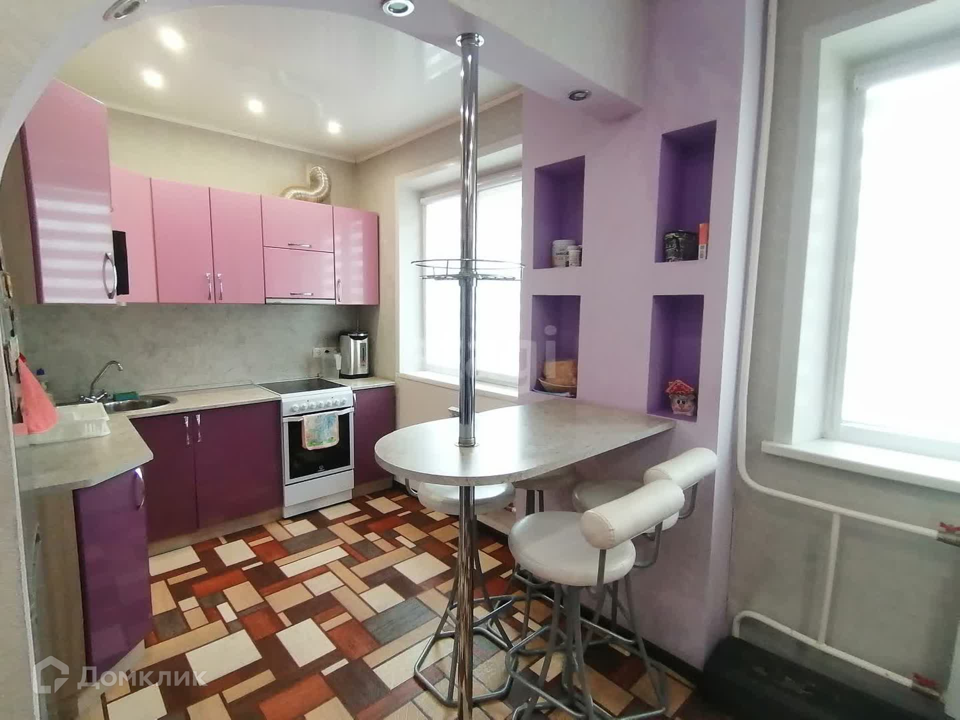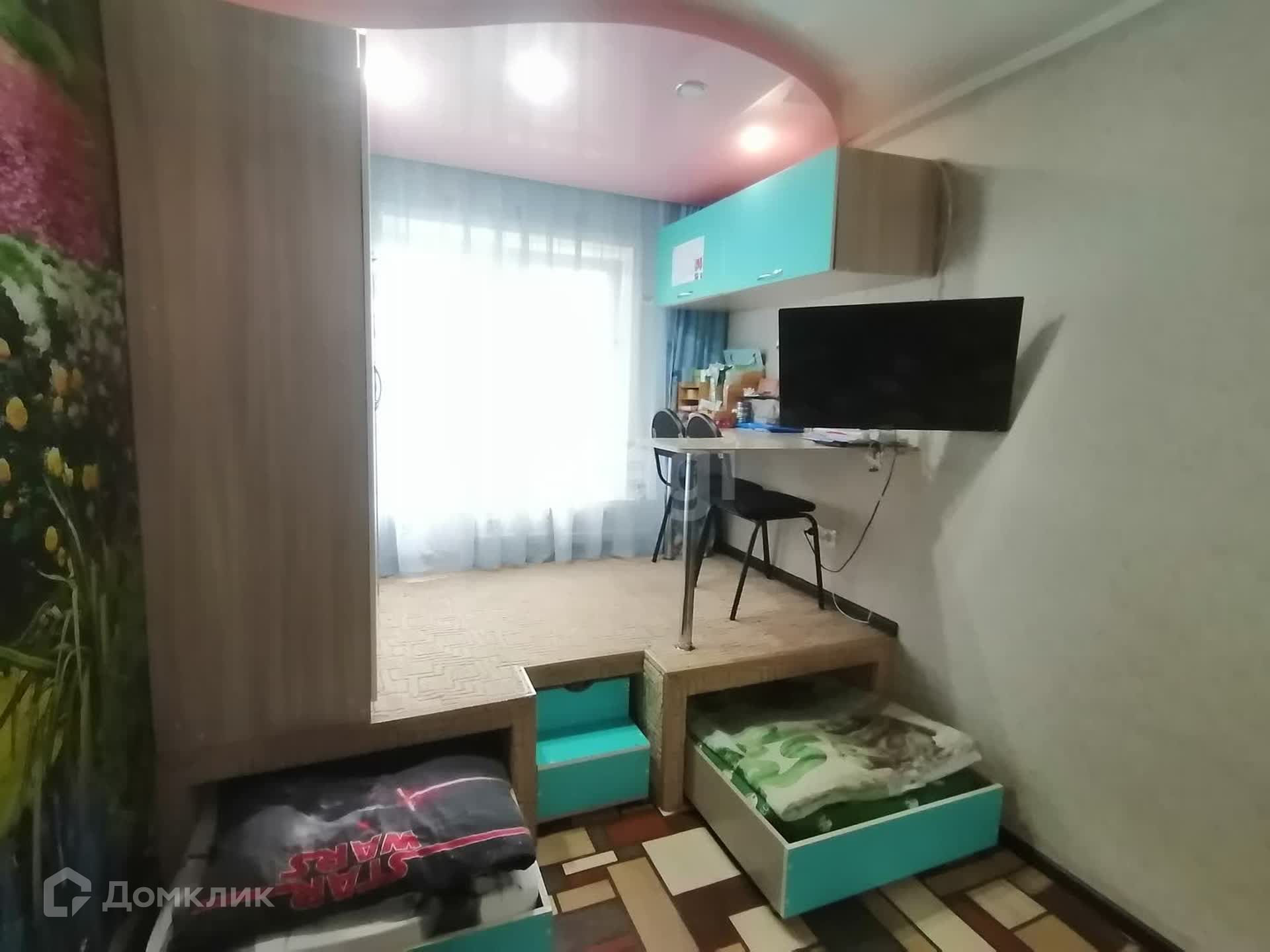Потолки натяжные- двухуровневые, на полу во всех комнатах качественный линолеум, Окна ПВХ. Заменили проводку, Батареи-биметалл, счётчики установлены. Вся встроенная мебель остаётся. Квартира хорошая, тёплая, солнечная.