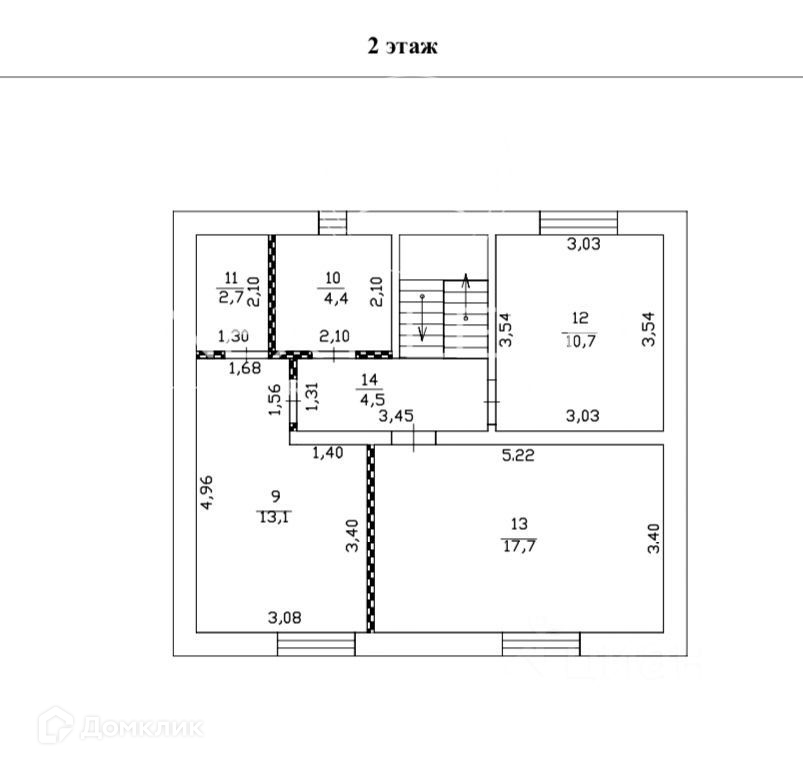 На 2 этаже: 2 спальни 17,7 кв.м. и 10,7 кв.м., детская 13.1 кв.м. с небольшой гардеробной 2.7 кв.м., санузел, коридор.