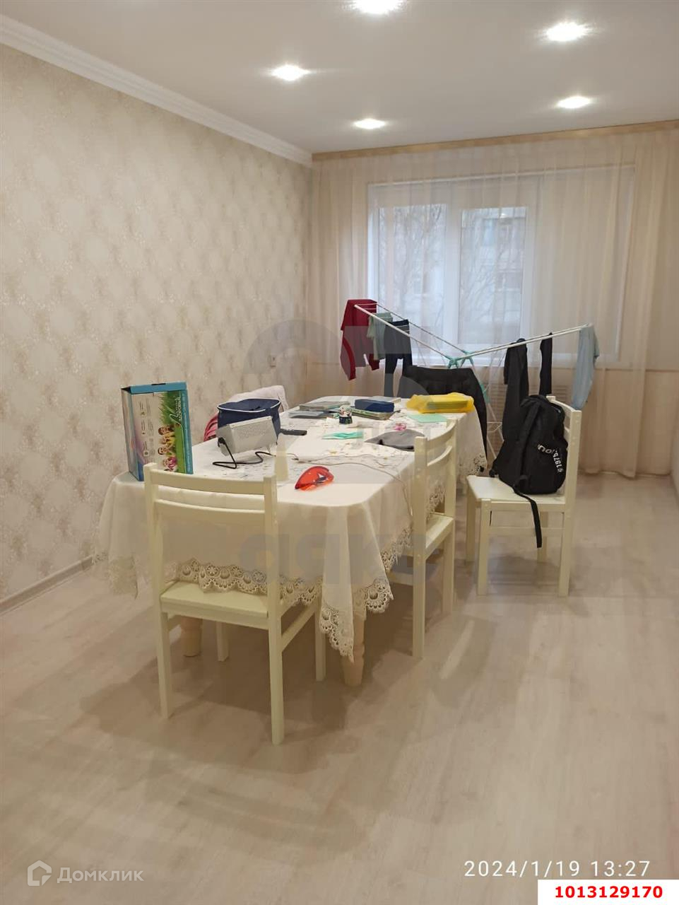 Выполнен качественный ремонт, выровнены стены и пол, установлены хорошие двери. Все что на фото остается, за исключением большого обеденного стала.